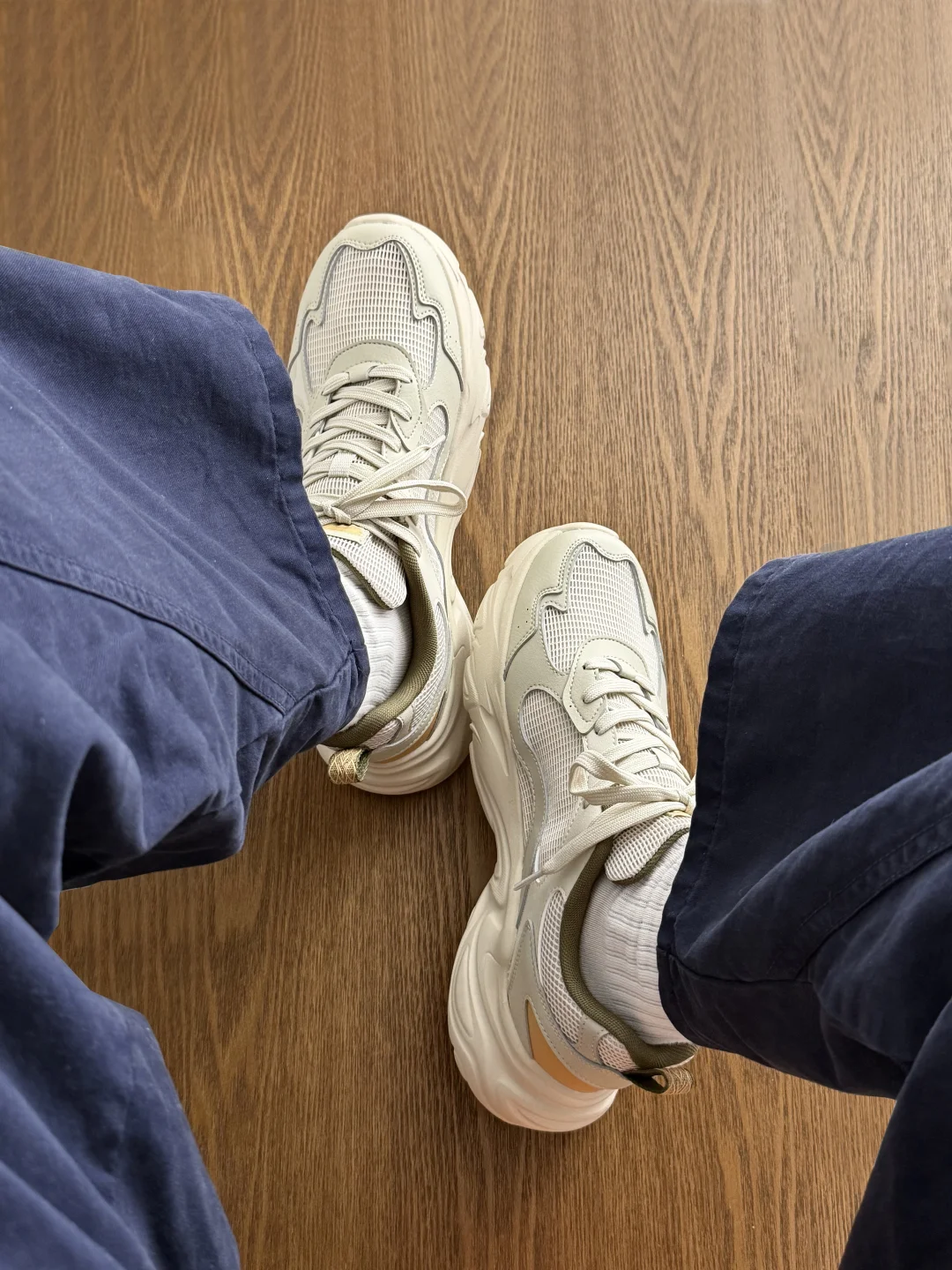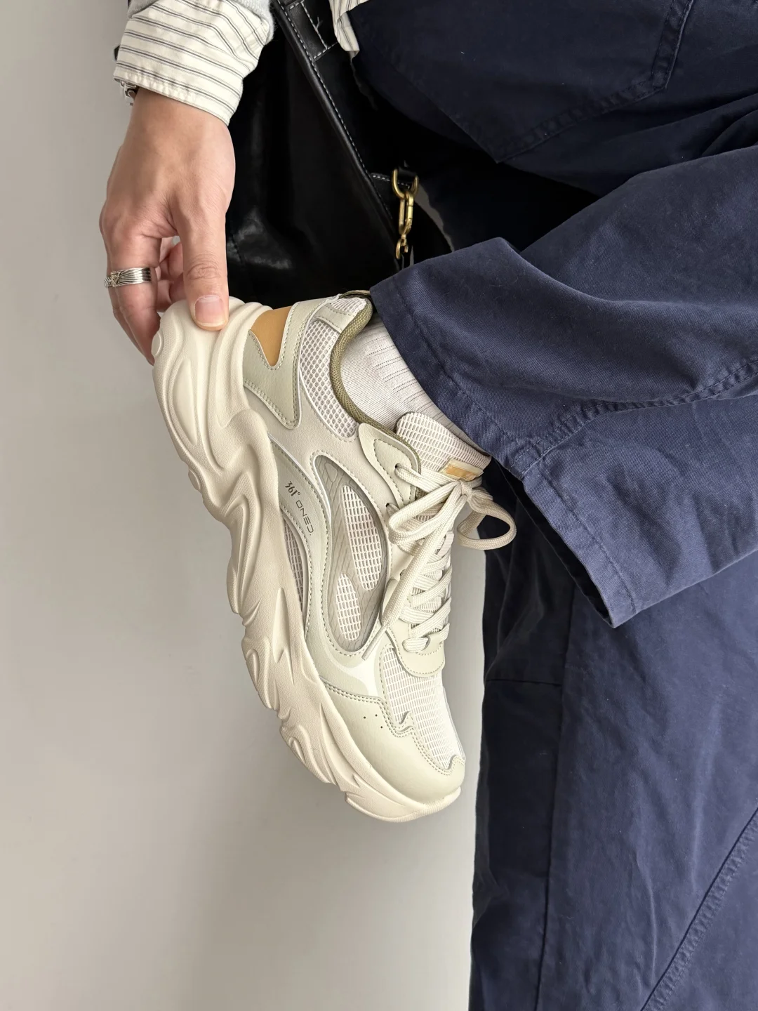 新入的这款361°核桃鞋燕麦奶太戳春季审美了! 低饱和奶白拼浅灰,调调温柔又高级,上脚脚感还很轻盈直接加大分。 鞋面是革面拼接的,质感很在线,细节处的车缝线让整体更有层次,关键是这个色系很百搭,春季出门随便套上都不踩雷。 悄悄带点厚底增高拉长腿型,也是加分项,百元价位能挖到这种颜值和实用性的鞋,真的闭眼冲~