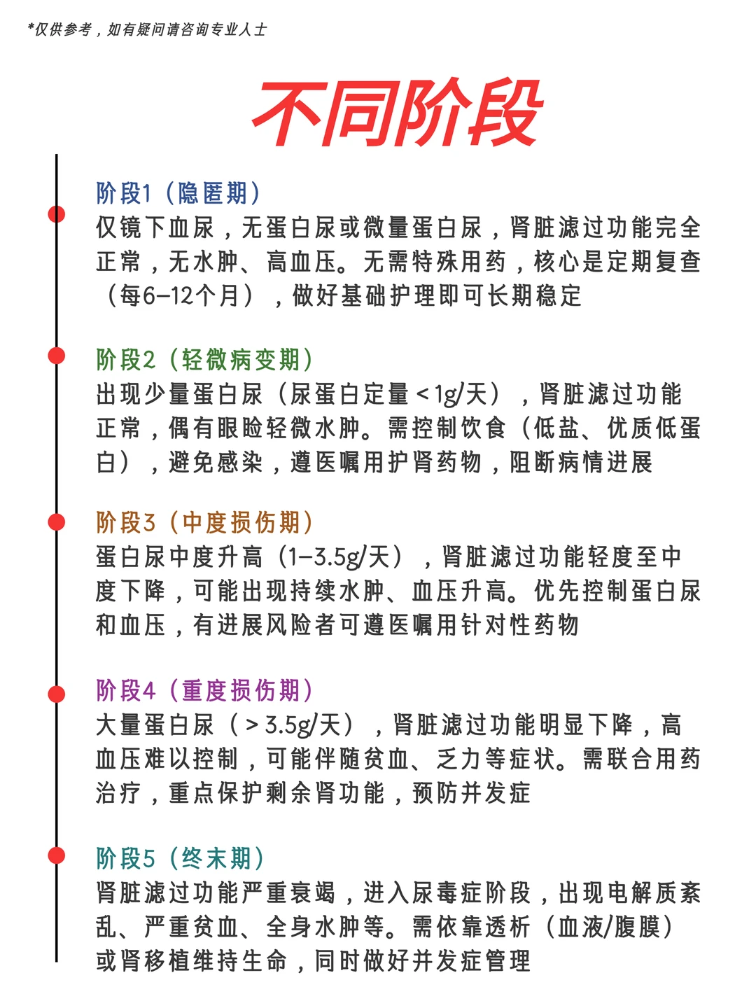 饮食:低盐低脂,控量摄入鸡蛋、瘦肉等优质蛋白,忌高钾高磷、烟酒