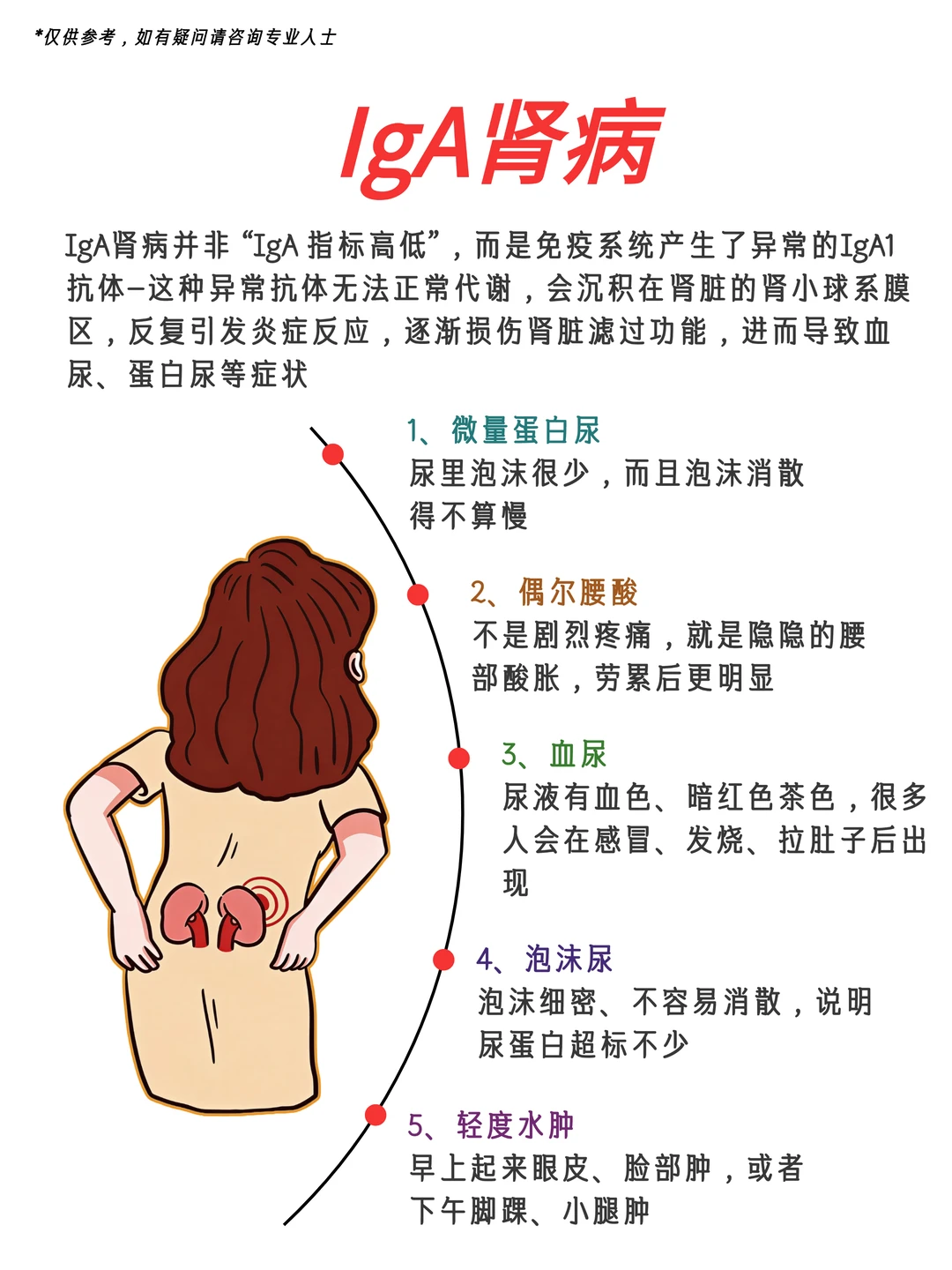 IgA是免疫系统的防御兵,IgA肾病患者会产生异常IgA1抗体,沉积在肾脏引发损伤,通常会在扁桃体发炎 或者 感冒后 ,发现血尿,泡沫尿,及腰疼等反应出现...