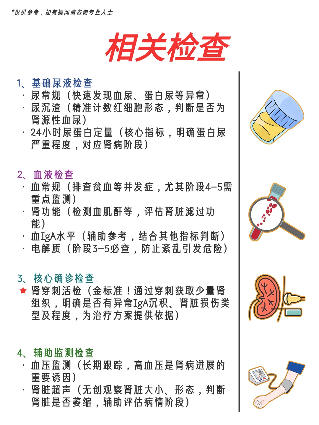 🩸液检查:🩸常规、肾功能、血IgA(辅助)、电解质