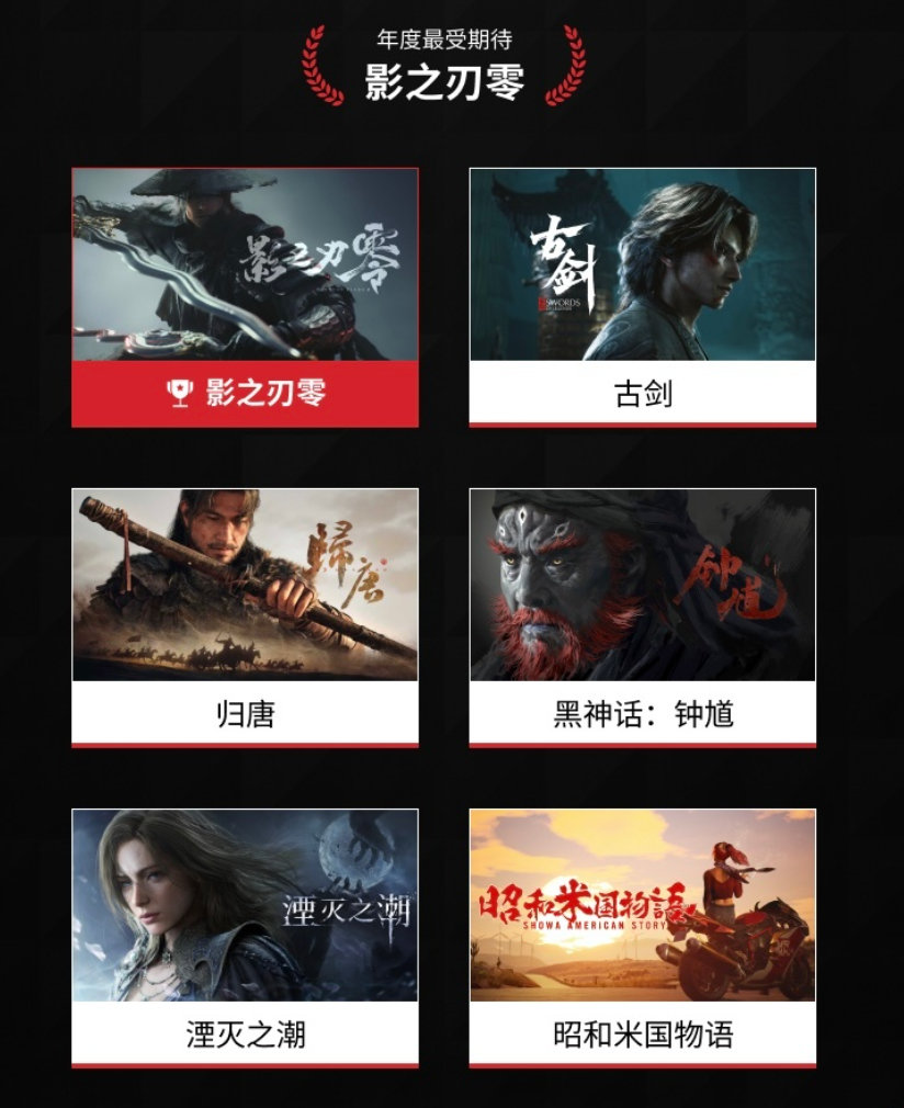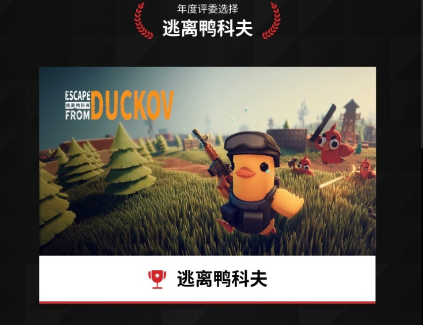 年度国产单机:《逃离鸭科夫》年度人气国单:《无限机兵》(玩家投票选择奖)年度评委选择:《逃离鸭科夫》年度小众之光:《动物迷城》年度未来可期:《万手一体》年度课外作业:《尘之回声》年度最受期待:《影之刃零》