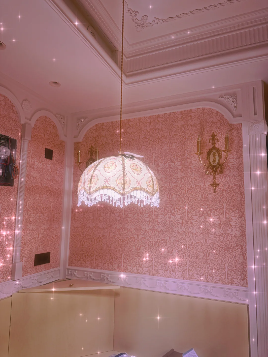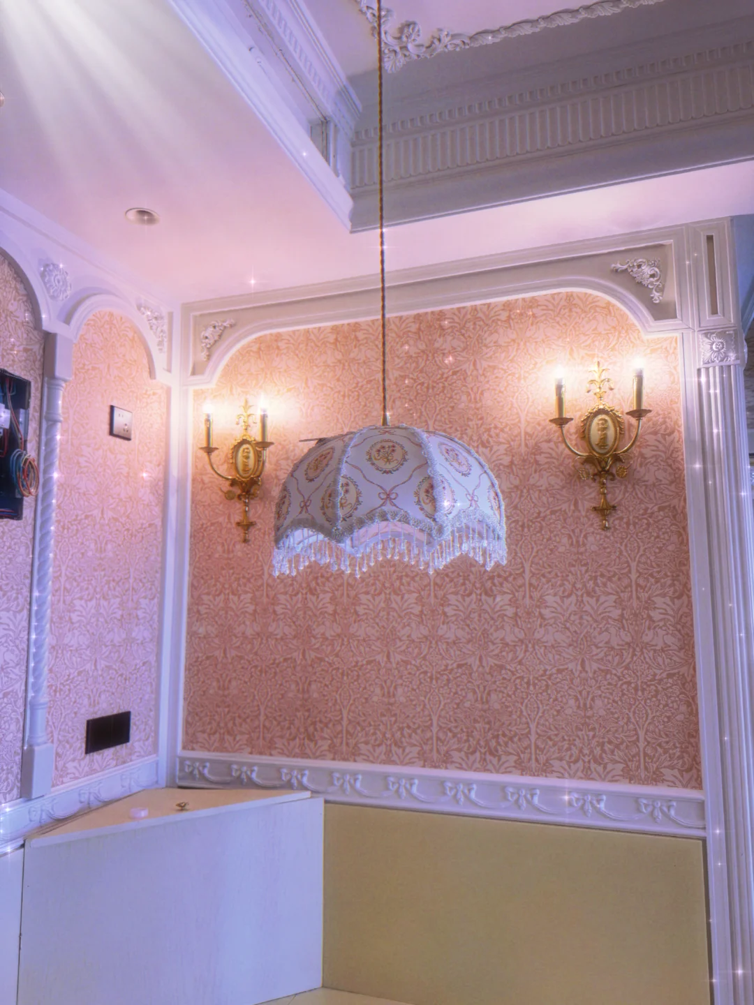 一直没有选到心仪的餐厅吊灯,不是纹样不喜欢就是尺寸不合适,最终决定自己选布定制[失望R] 最终效果真的太满意啦,和壁纸壁灯完美契合,期待卡座软包到位后的餐厅[暗中观察R]又是一波艰难的布料选择,大家有什么布料纹样建议吗?