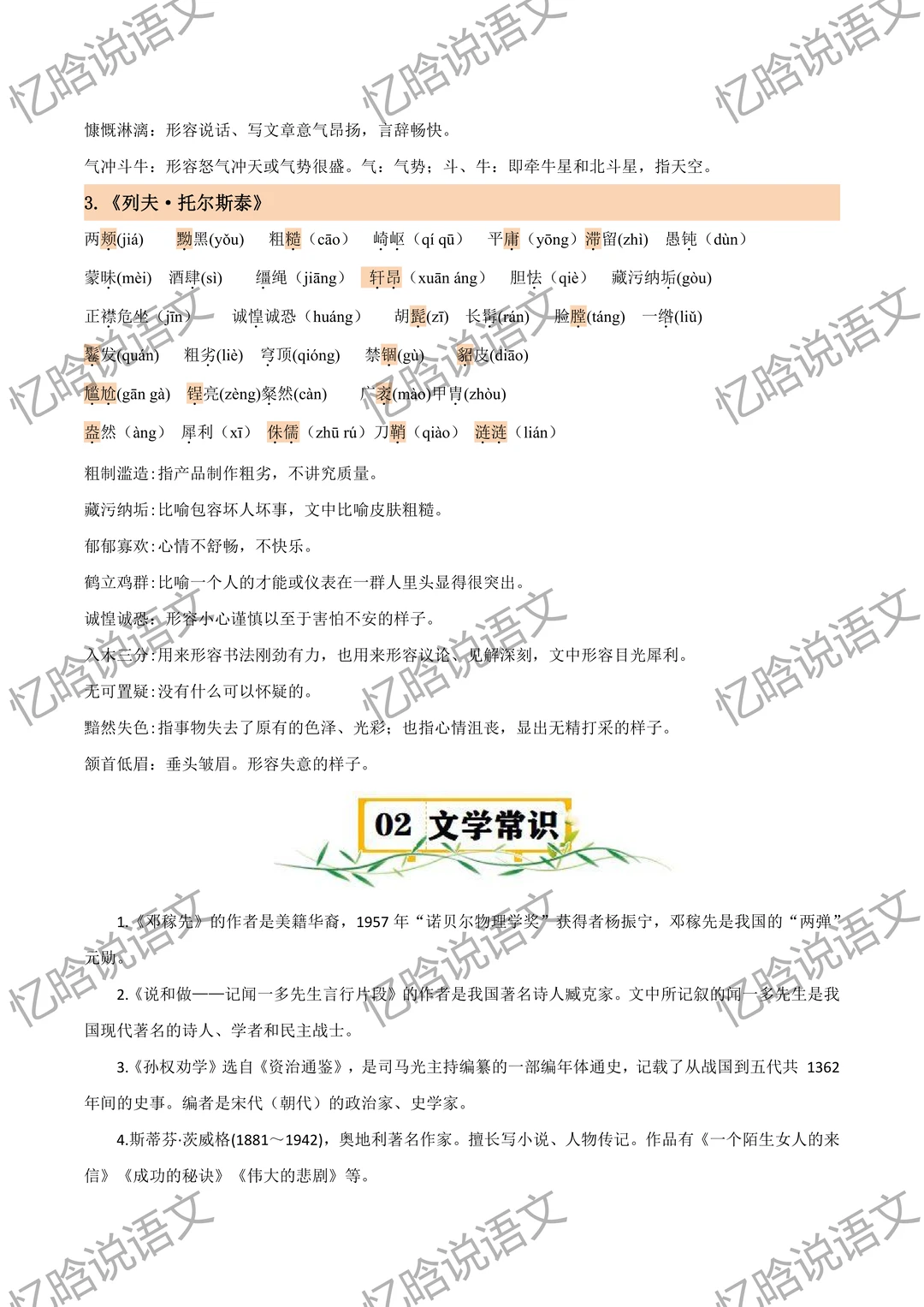 忆晗说语文 初中语文 语文 七年级语文 七年级下册 单元知识点 速记清单 初中语文怎么学 重点笔记 预习笔记