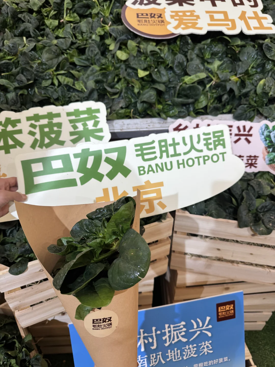 巴奴毛肚火锅长楹天街店北京巴奴北京人排队也要吃巴奴巴奴食材展菠菜界的爱马仕巴奴笨菠菜甜出圈一拖拉机的巴奴笨菠菜占领天街河南趴地菠菜