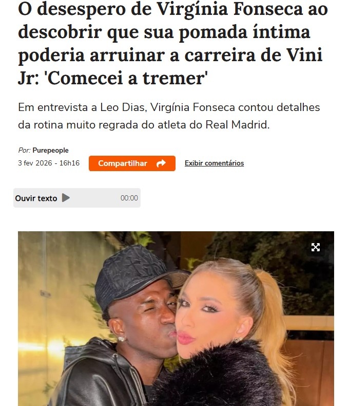 弗吉尼亚:这是一段非常幸福的关系。所以我把他放在优先位置,全力以赴。我正在努力经营这段感情,维尼修斯显然也一样。