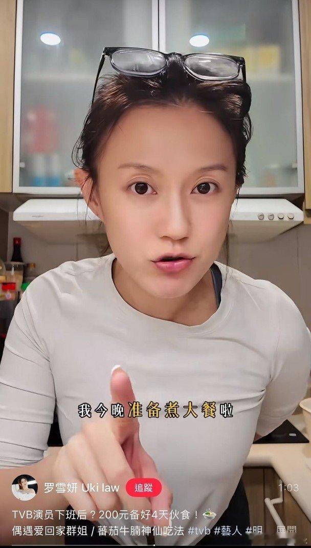 短片講逋她片從TVB收工後,沒有選擇外出用餐,而是親自到超級市場買餸,挑戰用200元解決4天的伙食。她透露近期開始健身和嚴格控制飲食,決定親自下廚。並花了約205元買了番茄、洋葱、牛腩、鯊魚骨湯包及豬骨等食材,炮製出「番茄牛腩」和「鯊魚骨響螺湯」兩道菜式。不過,全片重點落在她的穿搭上,見她穿着一件白色長袖束腰短版上衣,配上黑色貼身運動褲,勾出纖細的腰肢和驕人的上圍卻成為片段的重點所在,在準備食材和烹飪的過程中,若隱若現的腹部線條和玲瓏美好的身材令人羨慕。網民大讚她入得廚房出得廳堂。