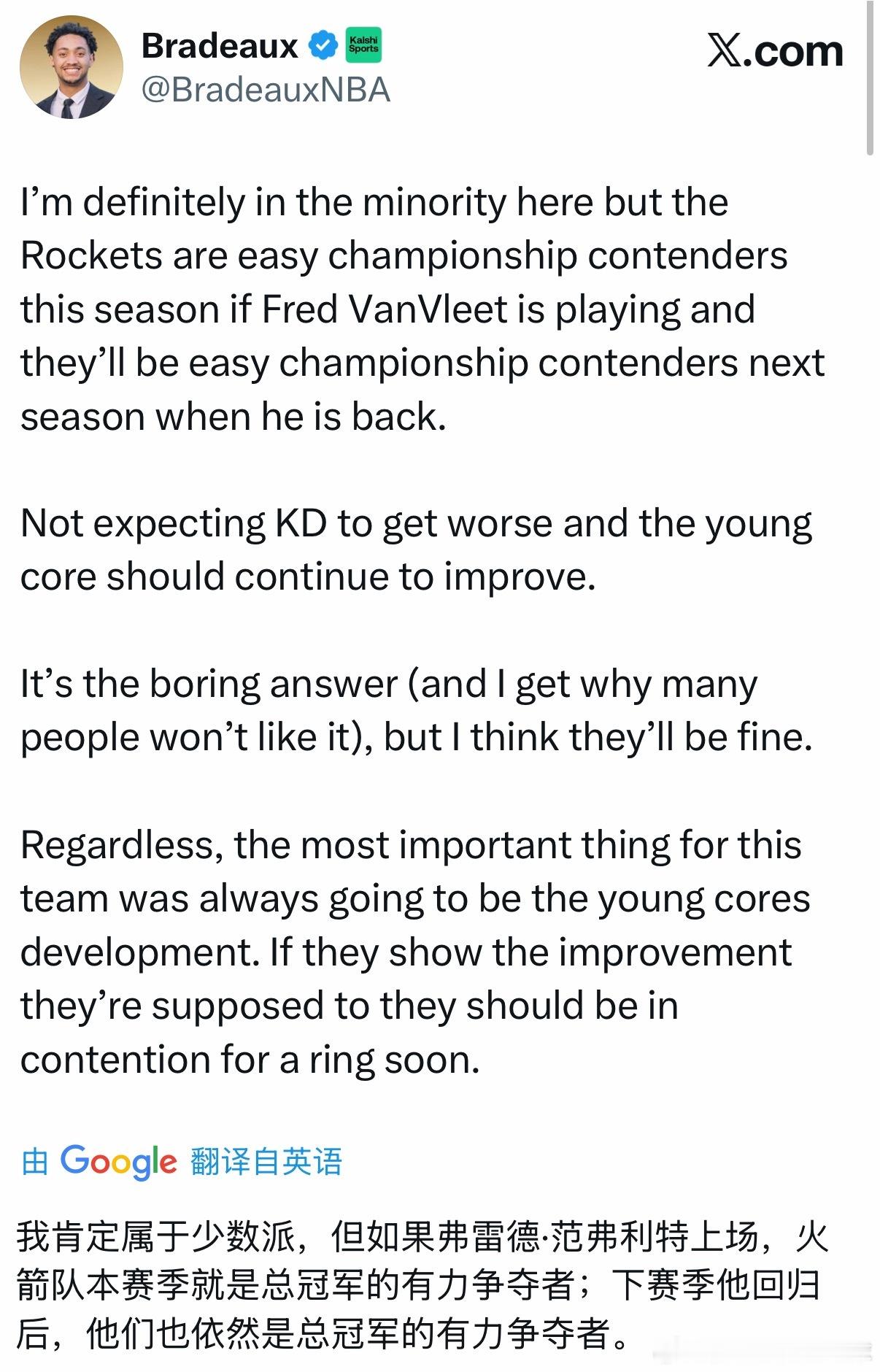 范弗利特今日在火箭官推下注意到很多粉丝表达火箭没有交易范弗利特的不满,随后火箭自媒体人BD站出来帮老范说话,老范转发帖子表示“有一些球迷疯了”👀