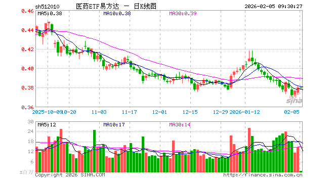 2月5日,医药ETF易方达(512010)开盘涨0.00%,报0.380元。医药ETF易方达(512010)重仓股方面,恒瑞医药开盘跌0.17%,药明康德涨0.51%,迈瑞医疗跌0.36%,联影医疗涨0.04%,爱尔眼科涨0.18%,片仔癀涨0.00%,云南白药涨0.18%,新和成跌0.54%,华东医药涨0.47%,复星医药跌0.15%。
