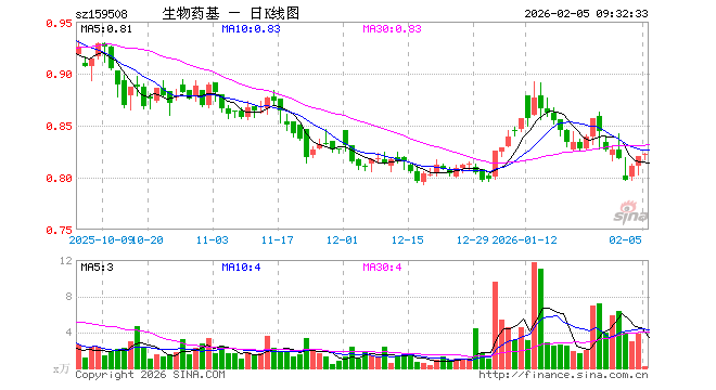 2月5日,生物医药ETF基金(159508)开盘涨0.12%,报0.821元。生物医药ETF基金(159508)重仓股方面,药明康德开盘涨0.51%,复星医药跌0.15%,上海莱士跌0.32%,泰格医药跌0.06%,长春高新跌0.34%,康龙化成跌0.23%,甘李药业跌0.99%,百利天恒涨0.75%,智飞生物跌0.57%,凯莱英跌0.04%。