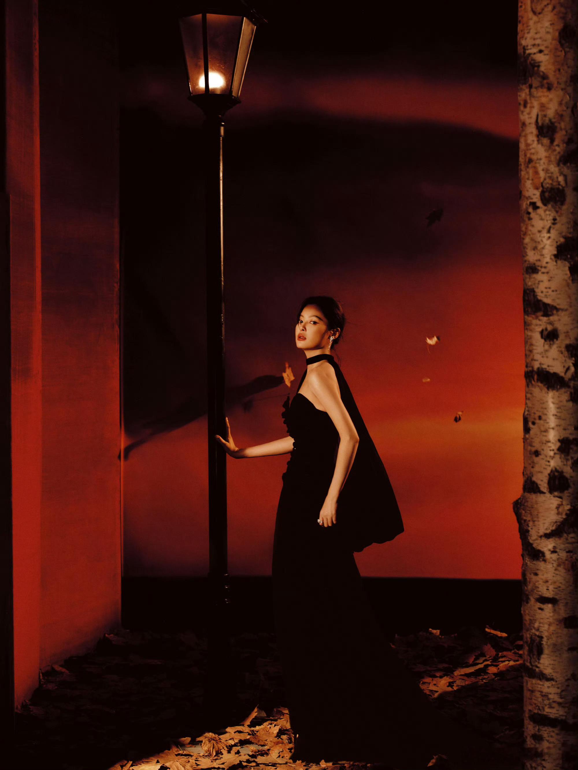 辛芷蕾美成啥样了辛芷蕾这组微博之夜图鲨疯了!🌌 黑丝绒抹胸裙勾勒出绝佳曲线,薄纱披风随动作轻扬,在橘红暮色里美得像从复古电影里走出来的女主角。落叶与白桦林衬得她又野又柔,抬眼间冷艳又慵懒,这姐的氛围感直接焊在脸上了! 微博之夜