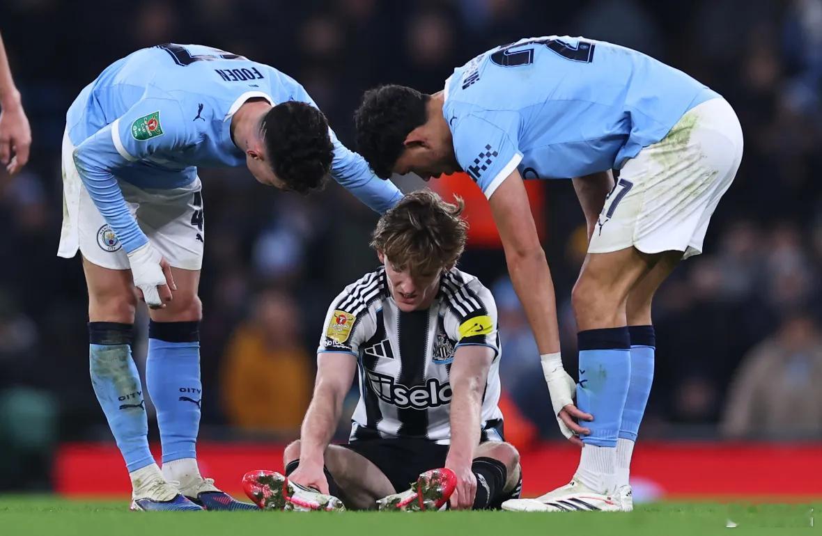 曼城3比1纽卡斯尔 埃兰加利用个人能力扳回了一球,但他浪费了更多的机会,维萨把握机会的能力也不行。雪上加霜的是,戈登半场快结束的时候拉伤腘绳肌,被巴恩斯换下。戈登大概率会缺席周六与蜜蜂的联赛。