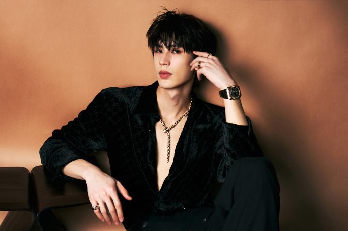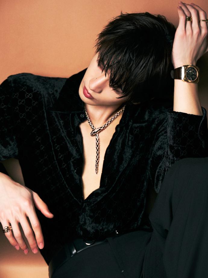 微博之夜红毯张凌赫微博之夜造型出图,好一个深V尤物!身穿GUCCI 黑色深V男装