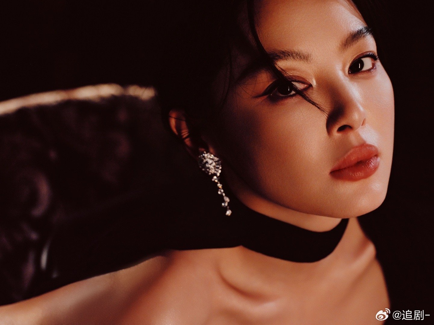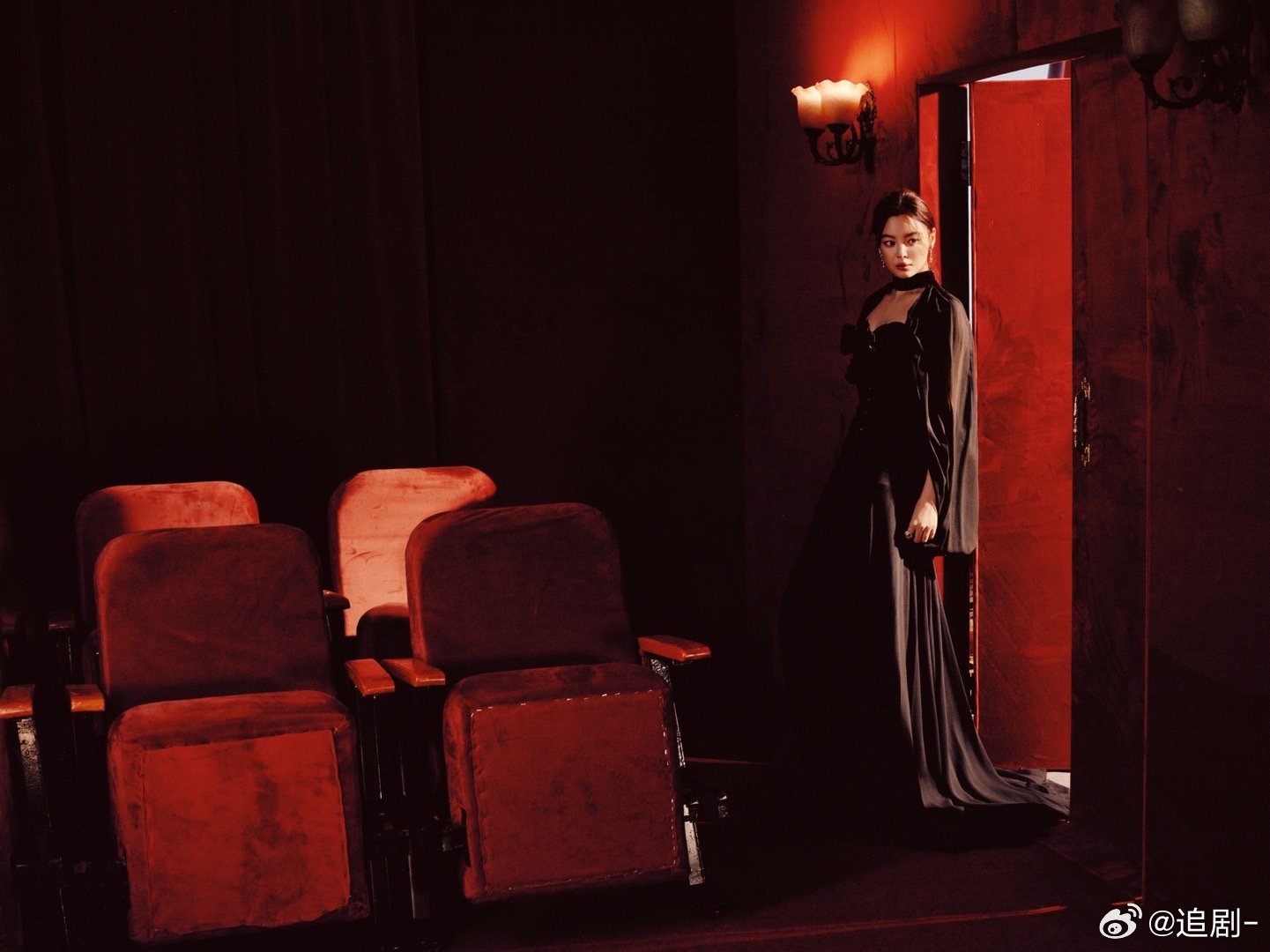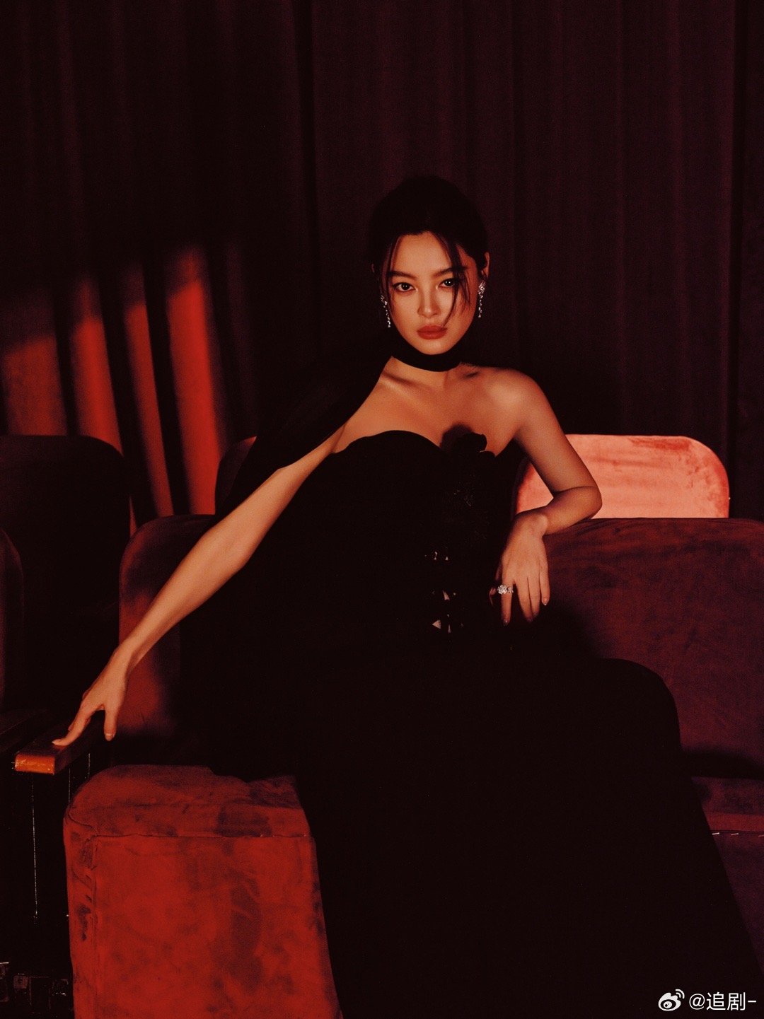 辛芷蕾微博之夜ES高定从复古电影里走出的女主角!辛芷蕾微博之夜造型,丝绒长裙配薄
