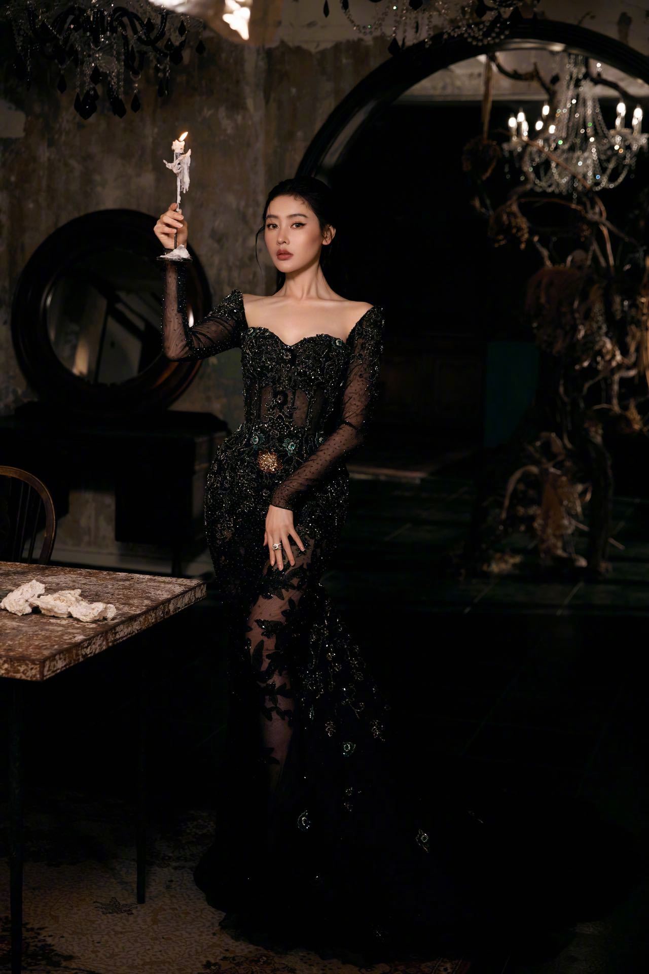 张天爱红唇黑裙造型女王来的 张天爱出发图来了!身穿黑色闪钻礼裙,修身剪裁凸显出她的优雅身姿。裙摆上的细碎钻饰随步伐闪烁,犹如夜幕中的星辰般璀璨。利落背头与妆容的组合,更添一份霸气与魅力,使她宛如暗夜女王,气场十足,期待她的精彩表现!