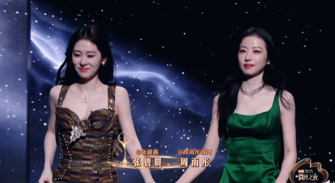 【2025微博之夜 红毯】张碧晨周雨彤牵手走红毯张碧晨周雨彤身材很曼妙 牵手走上