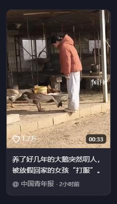 山东,一大学生放假回家,帮家里喂大鹅时,一只大鹅突然对女生发动袭击,没成想,女生不但没害怕,反而战斗力极强,直接把大鹅给打老实了,妈妈询问要不要把大鹅做掉,女生表示等把它打服再说。 一只曾经不可一世的大鹅,此刻正把头颅低垂在冻硬的泥土上,剧烈地喘息,浑身上下透着一股“怀疑鹅生”的颓丧。 而在它旁边,站着一位放寒假回家的女大学生。她的神情平静得让人意外,唯有裤腿上那几道凌乱的啄痕,记录着刚刚发生的“政权更迭”。 这本该是一次平平无奇的投喂。监控画面诚实地记录了冲突爆发的前一秒:女生提着饲料桶走进鹅圈,就在她放下桶、警惕性最低的瞬间,蛰伏在侧的大鹅发动了闪电战。 没有预警,这只家禽界的“战斗机”利用长颈优势和锯齿状的喙,第一击就精准咬住了女生的小腿。按照我们熟悉的剧本,接下来通常是人类扔下水桶、狼狈逃窜,留下一串惊恐的尖叫。 毕竟,对于很多80后、90后来说,“村霸”的阴影是刻在骨子里的。它们领地意识极强,听觉比狗灵,那张带齿的嘴拧起肉来,比容嬷嬷的手法还狠。 但这位女生没有按剧本演。腿部剧痛传来的瞬间,她没有退缩,反而被激发出了一种反直觉的战斗本能。她没有转身把后背留给掠食者,而是迅速调整重心,抬腿就是一脚阻断了对方的攻势。 但这只大鹅显然低估了对手的决心,它试图发动第二轮冲锋。这时候,一场教科书级别的“降维打击”开始了。女生双手齐下,单手锁死翅膀封锁机动性,另一只手精准按压颈部控制中枢。 几秒钟的博弈后,体重优势和格斗逻辑彻底压倒了野性本能。刚才还张牙舞爪的“村霸”,此刻被死死按在地上摩擦,除了喘气,连扑腾的力气都没了。 这一幕恰好被路过的母亲撞见。看到女儿腿上的伤,做母亲的第一反应是心疼,紧接着就是传统的“同态复仇”逻辑——既然它敢咬人,那就宰了炖肉,把它变成餐桌上的一盘菜。 这听起来很解气,也是农村处理惹事家禽的惯例。但刚结束战斗的女生却摇了摇头,否决了这个提议。 她看着脚下那只已经彻底服软的大鹅,给出了一个更具政治智慧的裁决:不杀,留着。直接宰杀只能解决一顿晚饭,而“打服”并保留活口,是为了建立长期的心理威慑。她要让这只鹅在往后的日子里,只要看到这双鞋、这个人,就会唤醒肌肉深处的恐惧记忆。 这段视频流出后,网友们直呼痛快。这种情绪不仅仅是因为看到恶鹅被惩治,更在于它打破了一种长久以来的“恐惧螺旋”。 原来那个在童年记忆里追得我们满街跑、仿佛不可战胜的庞然大物,在绝对的力量和硬朗的作风面前,也会瞬间从“村霸”变成待宰的羔羊。 寒风依旧凛冽,但在这个院子里,秩序已经被重新确立。那只大鹅保住了性命,但它在那一刻失去的“江湖地位”,恐怕这辈子都找不回来了。