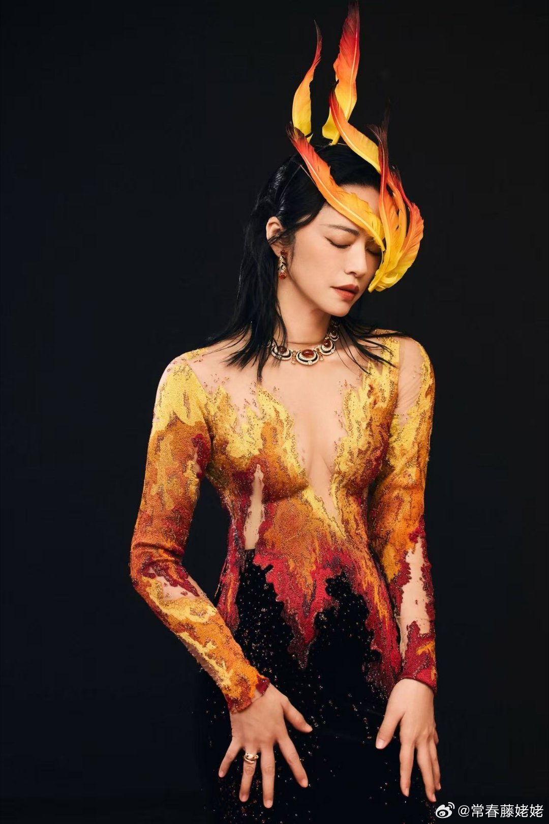 姚晨微博之夜,热情火焰鸟造型,大气又特别,不愧是大花!