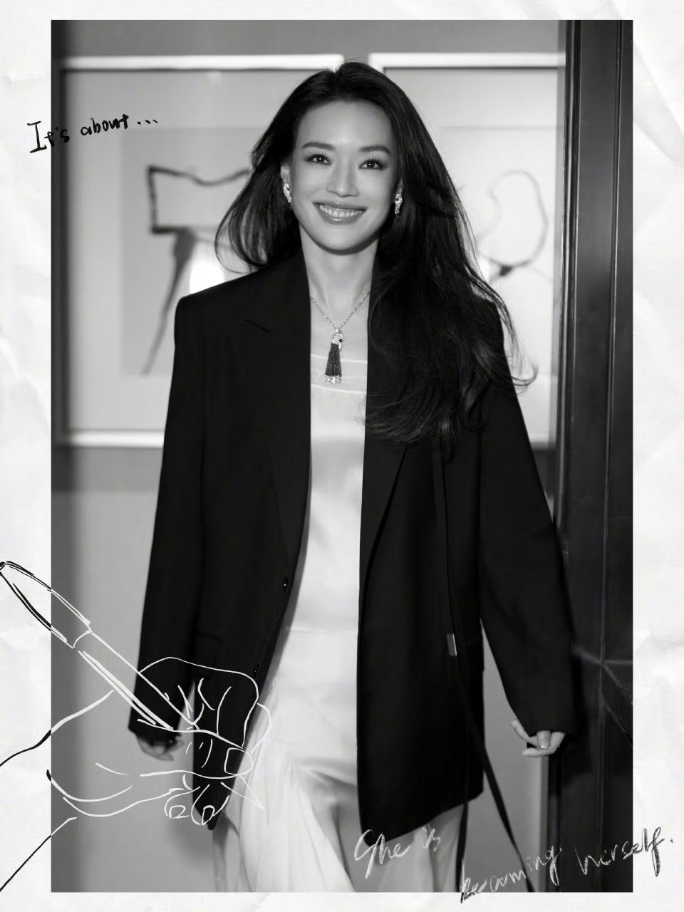 舒淇戴高珠美商在线 舒淇身穿抹胸白裙搭配黑色西装外套亮相微博之夜红毯,以导演身份亮相,礼服简约高级,以卡地亚高级珠宝加持,整个人明媚大气