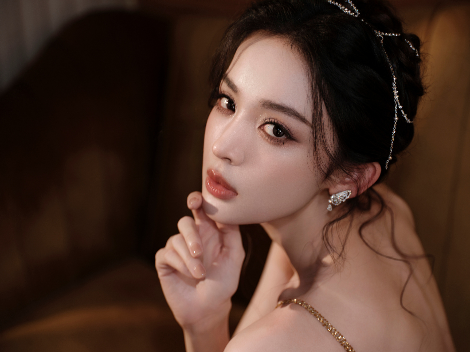 被娜扎这样盯着谁能受得住啊 娜扎眼波流转勾人至极,直视镜头氛围感直接拉满,冷白皮配鎏金耳饰超绝,直播名场面,谁被盯着都扛不住!