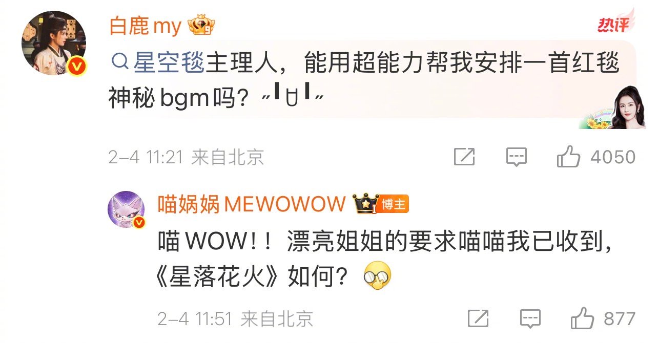 白鹿想要红毯BGM白鹿就得到 白鹿的红毯专属BGM这不就来啦!美女的小愿望立刻被满足,宠粉氛围直接拉满~