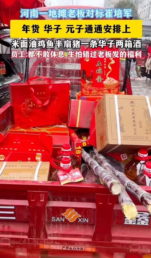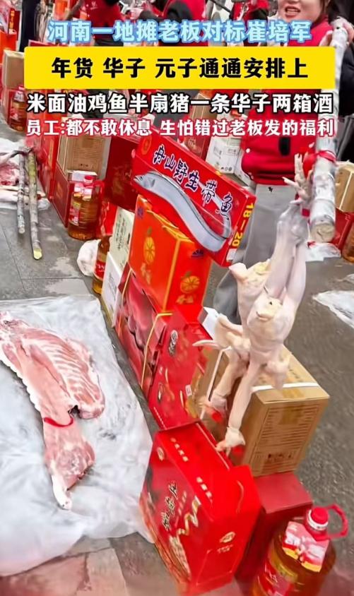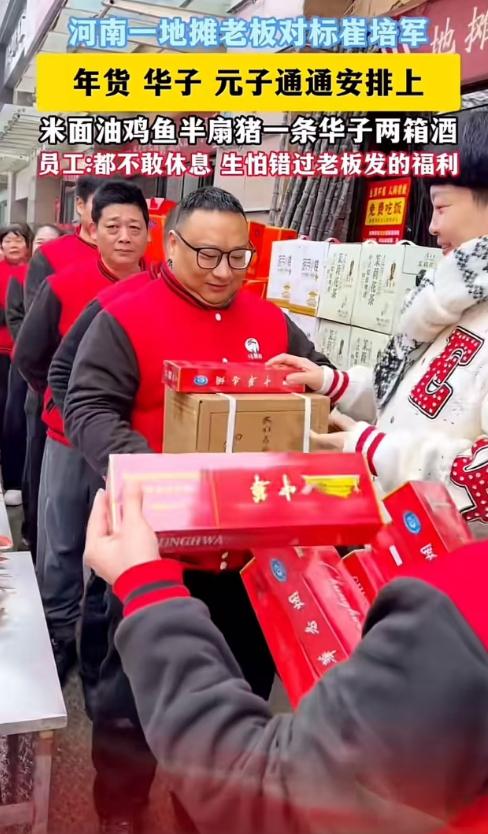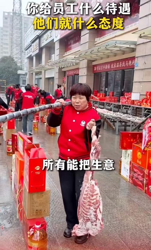 “这个女老板火了!”河南一老板对标崔培军,拿出300万给员工办年货,年货,香烟,钞票通通安排上。有人质疑老板作秀,但女老板的一番话,令人拍手叫好! 半扇猪肉有多重?对于常年坐在格子间里谈KPI的人来说,这可能只是一个轻飘飘的名词。今年1月于河南,半扇沉甸甸的生肉,搭配整鸡整鱼、成箱白酒、一袋米、一桶油,还有一条中华香烟与厚实现金红包,成为200多名员工手中极具分量、象征尊严的福利。 就在这个月,河南女老板林秀云把300万真金白银砸向了年会现场。不见PPT中勾勒的宏伟蓝图,唯余堆积成山的物资,以一种近乎视觉暴力之态,冲击着人们的感官,现实与幻梦的落差,令人喟叹。 窗外是2026年开年的凛冽寒风,各行各业都在缩编、降本,不少HR正绞尽脑汁计算裁员赔偿的底线。在这家企业的年会上,员工们眼眶泛红,正将这些带着质朴气息、近乎“土味”的年货奋力扛回家,那场景,满是对生活的期许与对企业关怀的感动。 这种强烈的冷暖色温反差,让人不得不重新审视那个古老的商业命题:老板和员工,到底是什么关系?有人说这是作秀,是为了博流量。毕竟在这个短视频泛滥的时代,300万确实能买来不错的曝光量。 但林秀云回应得干脆利落,甚至带着一股狠劲。她没扯什么社会责任,而是直接抛出了一个“工资购买力定律”:如果员工一个月只能拿到3000块,你跟他谈什么态度?谈什么责任感? 这话说得太糙,但也太真。于她的逻辑而言,员工踏足职场,本质上是为了肩负起家庭的生计重担,以工作所得维系家庭的安稳与日常所需。给3000块的工资,就只能买到3000块的执行力。想买在那之上所谓的“主人翁意识”,你就得加钱。 拒绝“画大饼”,拒绝谈“狗屁理想”,这位女老板不仅是在发年货,更是在进行一场精准的“执行力购买”。她很清楚,当货币购买力在波动时,老板口中的“未来”是不能充饥的。 这似乎成了河南老板的一种独特群像。林秀云毫不避讳,她的行为明显是以河南矿山的崔培军为对标对象。其这般做法不加掩饰,直截表明了自身的参照与目标。 想当年,崔培军直接在年会上垒起“现金墙”,连员工父母的补贴都发到位。这看起来土气冲天,完全不符合现代MBA教材里的管理美学。 可效果呢?看看旁边的胖东来就知道了。一个清洁工能拿到8000元的月薪,结果就是根本不需要主管盯着,地板上有一点灰尘他们自己都难受。 这就是最朴素的商业契约。当管理者试图用复杂的企业文化、感恩教育来洗脑员工时,往往忽略了人性中最基础的交换原则:钱给到位了,态度自然就到位了。 那种“不需扬鞭自奋蹄”的自觉性,从来不是靠听讲座听出来的,而是靠工资条撑起来的。 舆论场上的撕裂感也挺有意思。 一拨人站在道德高地上,批评这种发半扇猪肉、发香烟的行为太肤浅,说什么“人活着除了钱还有理想和文化传承”。另一拨人,也就是绝大多数的打工人,却在评论区里破防了。他们受够了老板发100块红包还要在群里谢主隆恩,受够了嘴上喊着“家人文化”背地里却在克扣社保的虚伪。 在这个“996福报”被当作某种恩赐的语境下,林秀云的“肤浅”反而成了一种稀缺的真诚。她撕碎了职场上那层温情脉脉的遮羞布,把赤裸裸的生存逻辑摆在桌面上。那些批评她缺乏高雅情趣的人,大概从未体会过扛着半扇猪肉回家时,那种能为家里添道硬菜的踏实感。 真正的尊重,从来不是年会上一张轻飘飘的“优秀员工”奖状,而是让员工在走出公司大门时,口袋是鼓的,手里是沉的。林秀云这300万砸下去,响声之所以这么大,不是因为钱多,而是因为她打了太多“空谈家”的脸。 在这个寒冬,愿这样的“土味”老板多一点。毕竟,理想可以谈,但得先让大家把肉吃进嘴里。