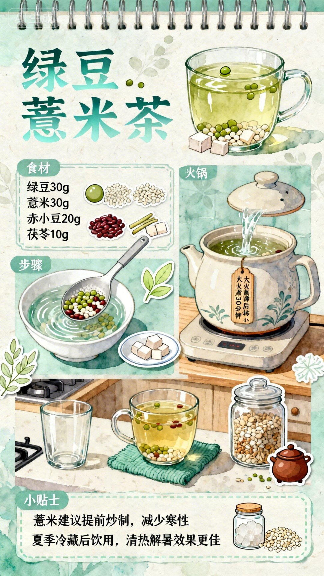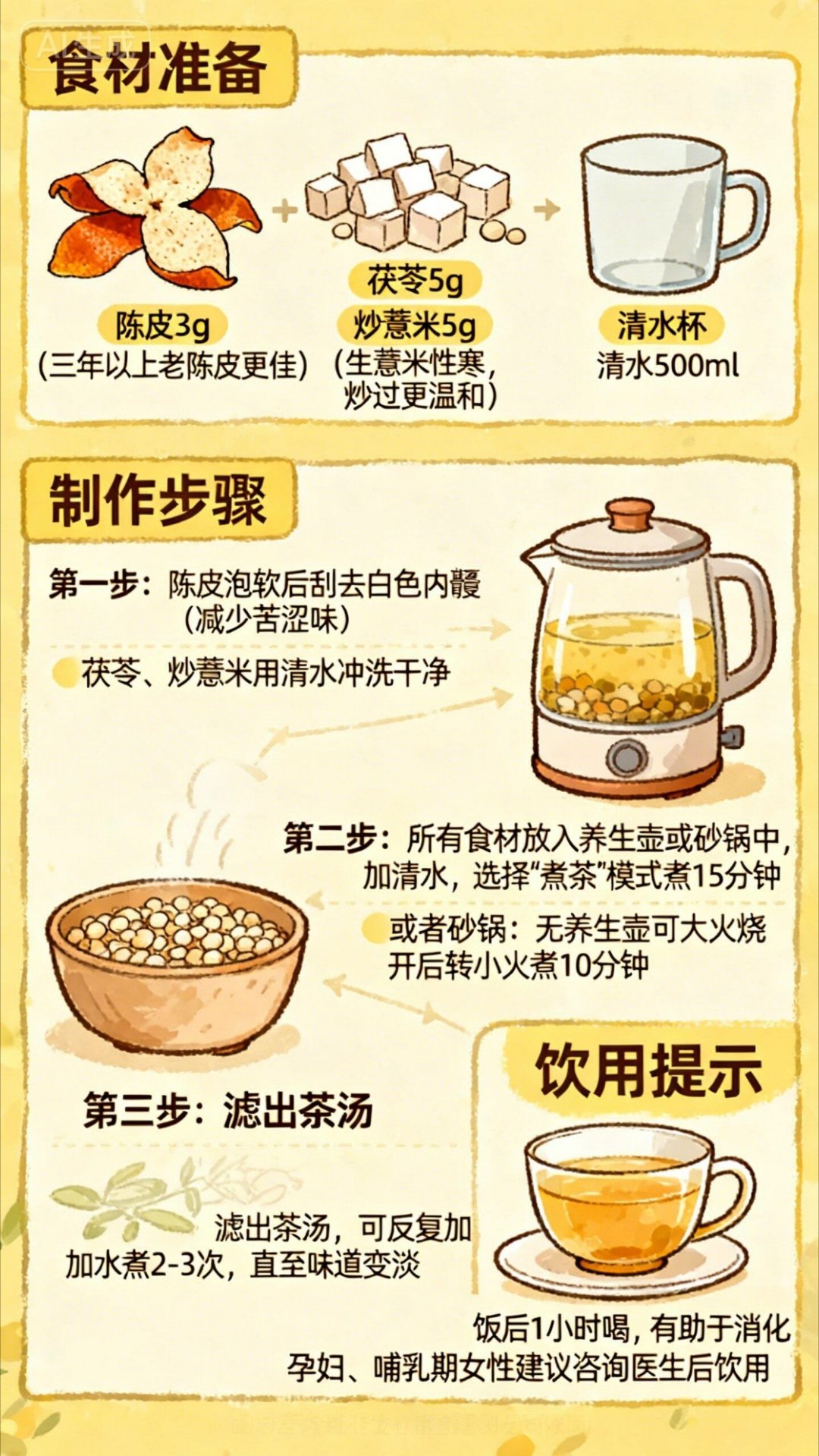 AI制作的健康食谱及养生茶烹饪教程。适合爷爷奶奶的健康饮食杭州爷爷奶奶的电子饭搭