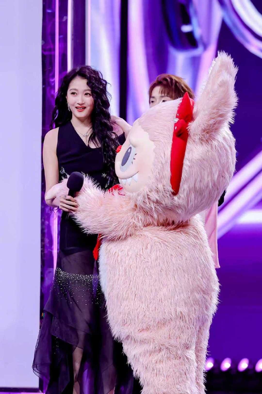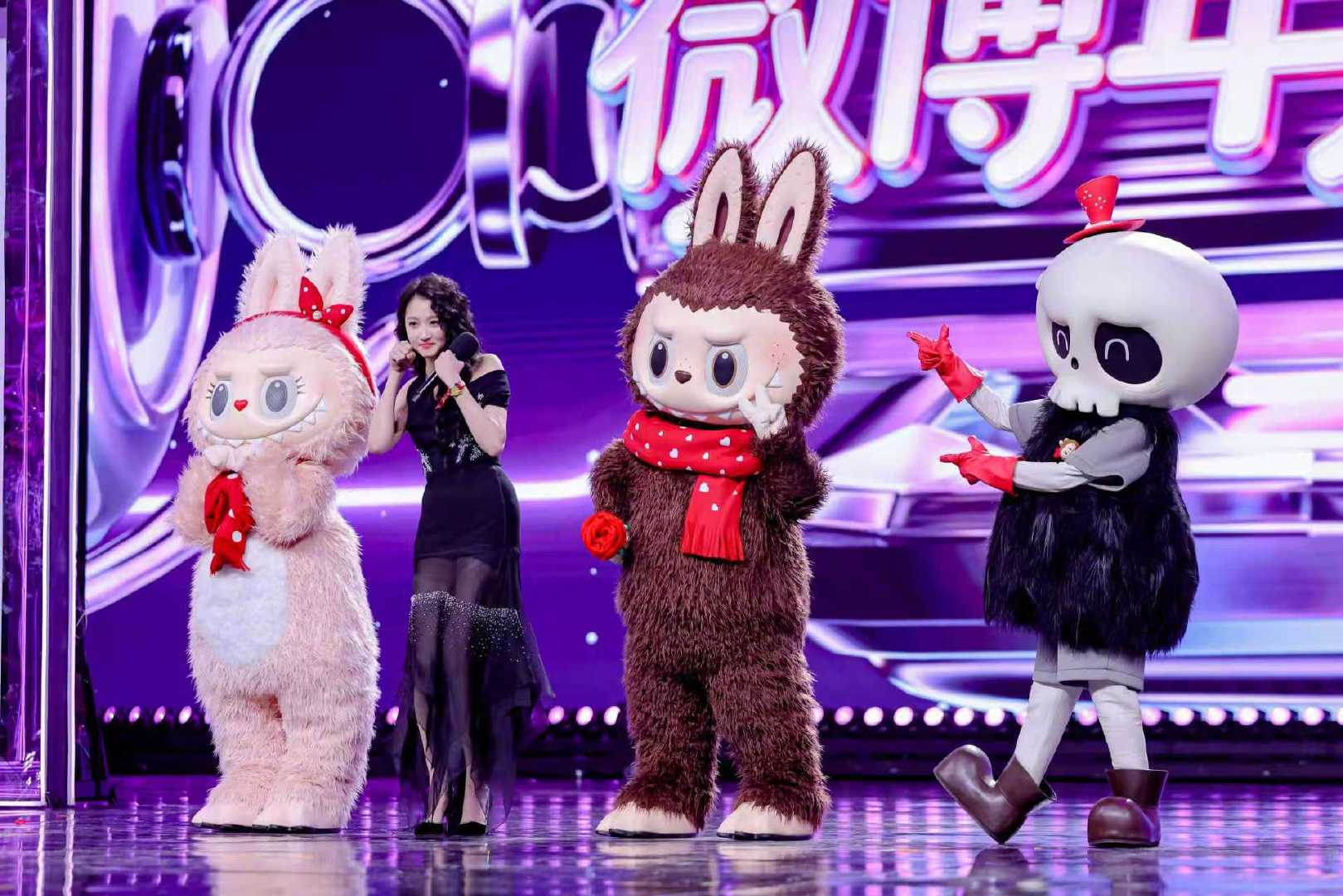 关晓彤和LABUBU比腿长 嘴角疯狂上扬!关晓彤 LABUBU 微博之夜三连拍超
