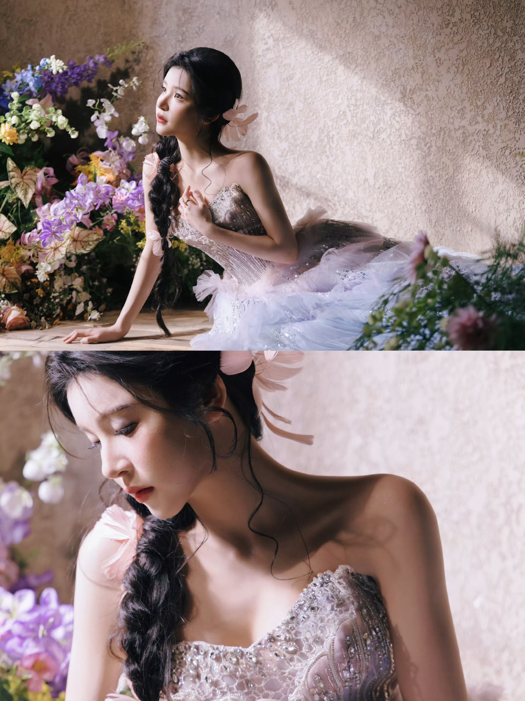 饶嘉迪 人鱼公主上岸了 饶嘉迪梦幻登场!粉紫纱裙层叠飘逸,羽毛编发俏皮灵动,周