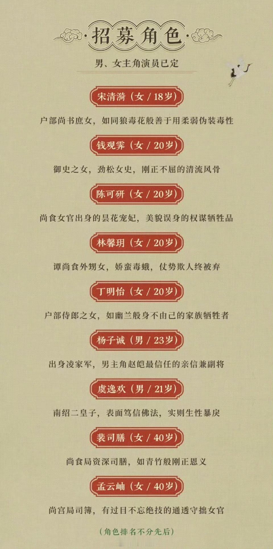 司宫令 宋祖儿丁禹兮已经定了,说是平番