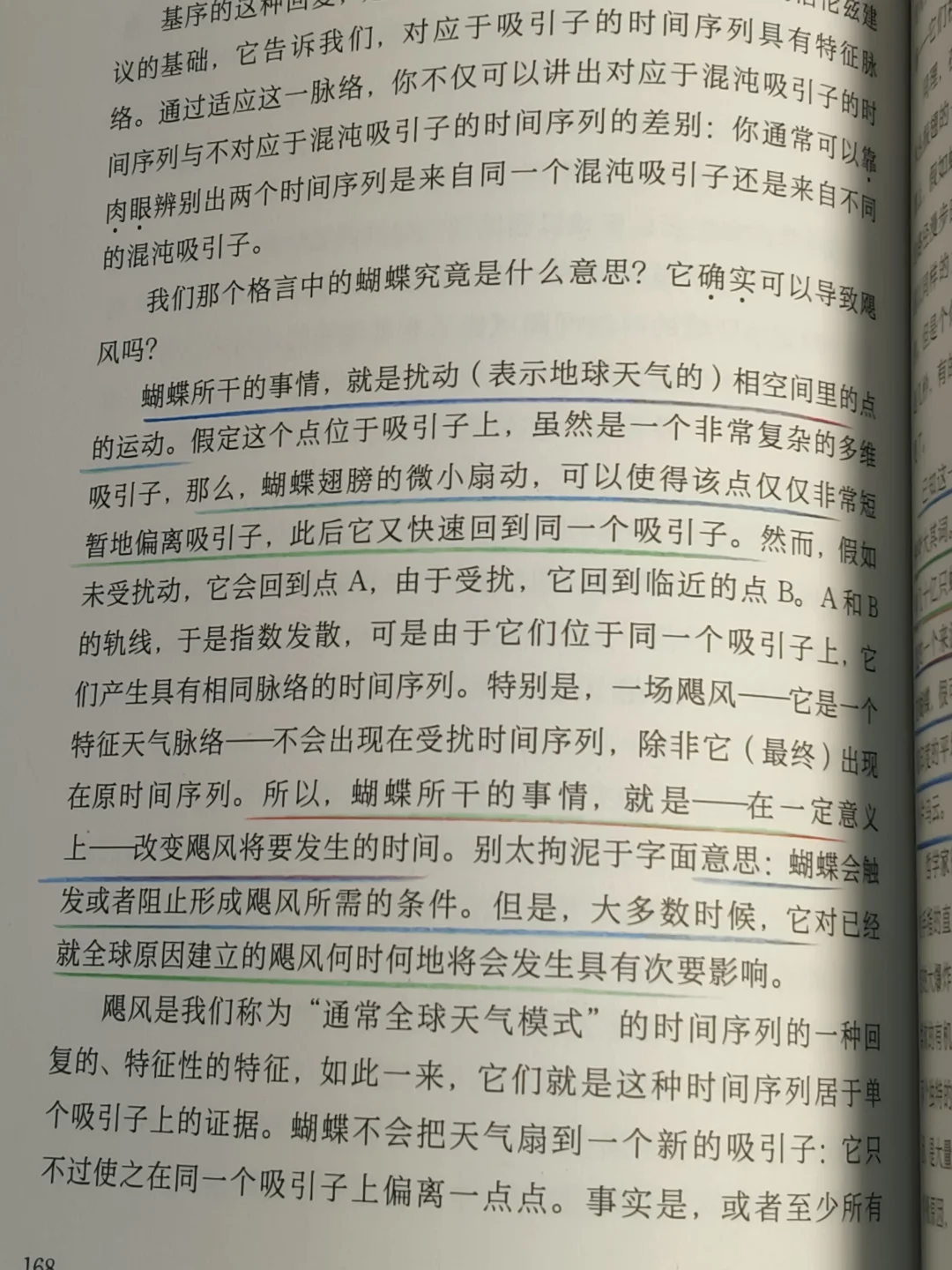 而是确定性系统中,因微小扰动而无'限放大的、无法预'测却内在有序的行为。