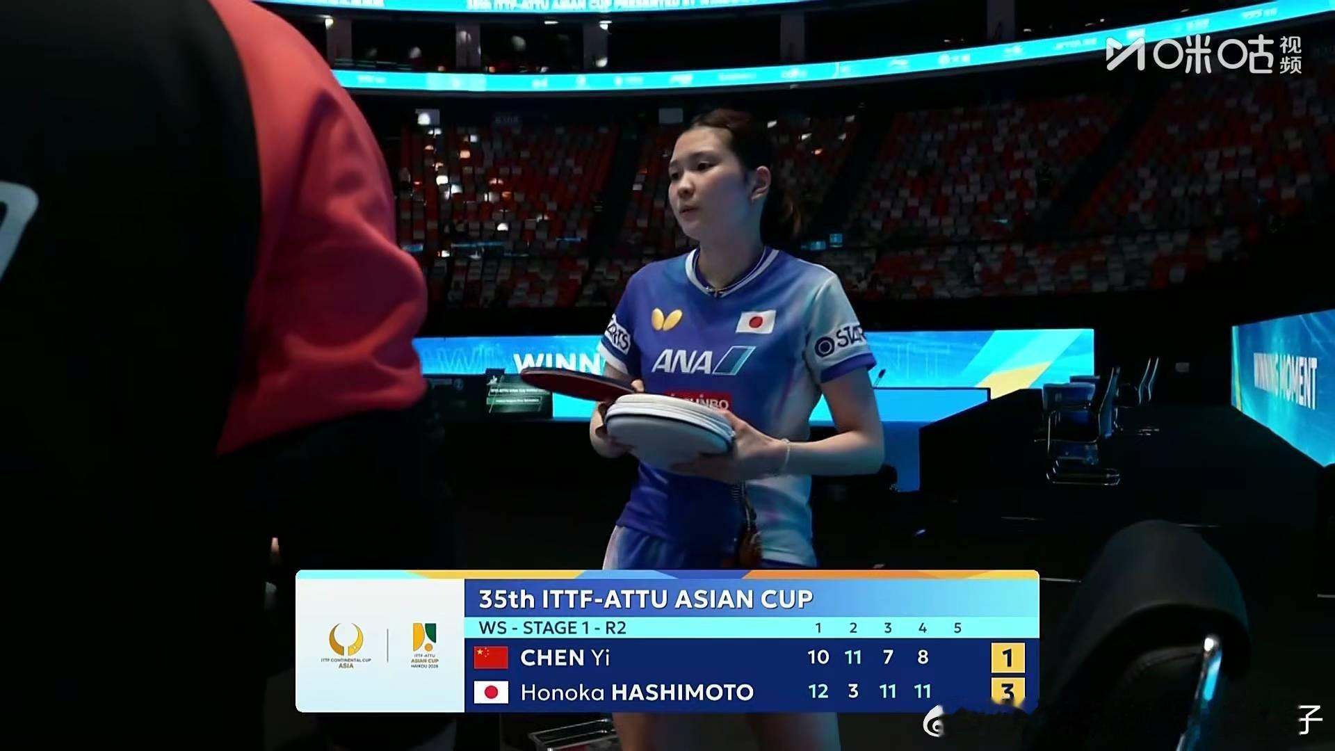 陈熠1比3桥本帆乃香(-10,3,-7,-8)2026年国际乒联海口亚洲杯女单小