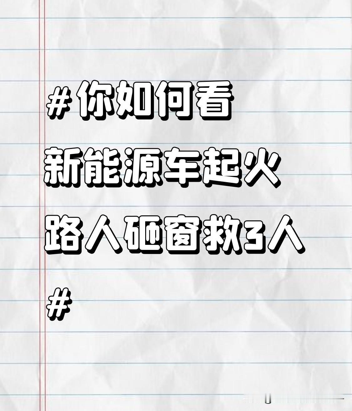 你如何看新能源车起火路人砸窗救3人 新能源车起火路人砸窗救3人这事,必须得给路人点赞!新能源车起火可不是小事,火势蔓延快,还可能有爆炸风险。这时候能站出来砸窗救人,需要莫大的勇气。 想象一下那紧张的场景,起火瞬间车内的人肯定慌了神,而路人果断行动,打破车窗将3人救出,这就是生命的接力。这也提醒我们,遇到突发状况时,在保证自身安全的前提下,能帮一把就帮一把。说不定一个小小的举动,就能挽救几个家庭的幸福。希望大家都能有这份热心和勇气,传递正能量!