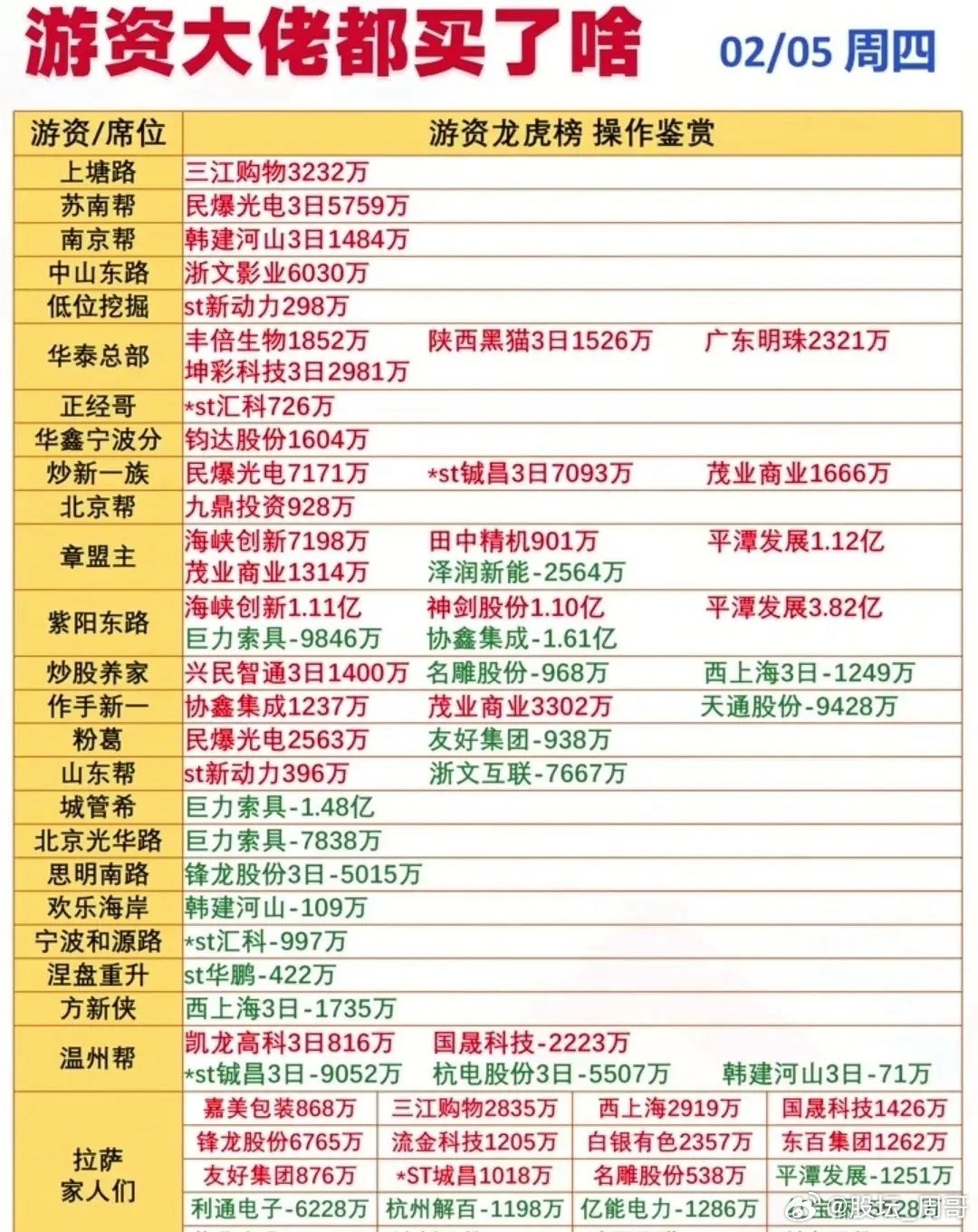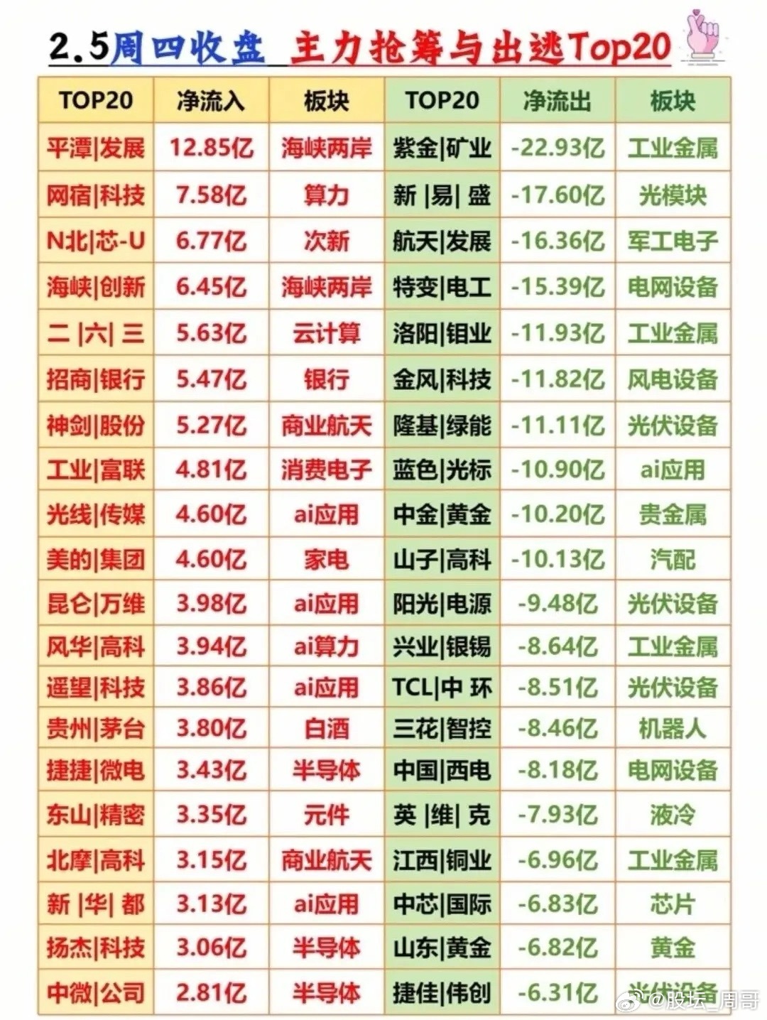 🚨 2月5日周四收盘大揭秘:主力、游资、暗盘资金动向全曝光!