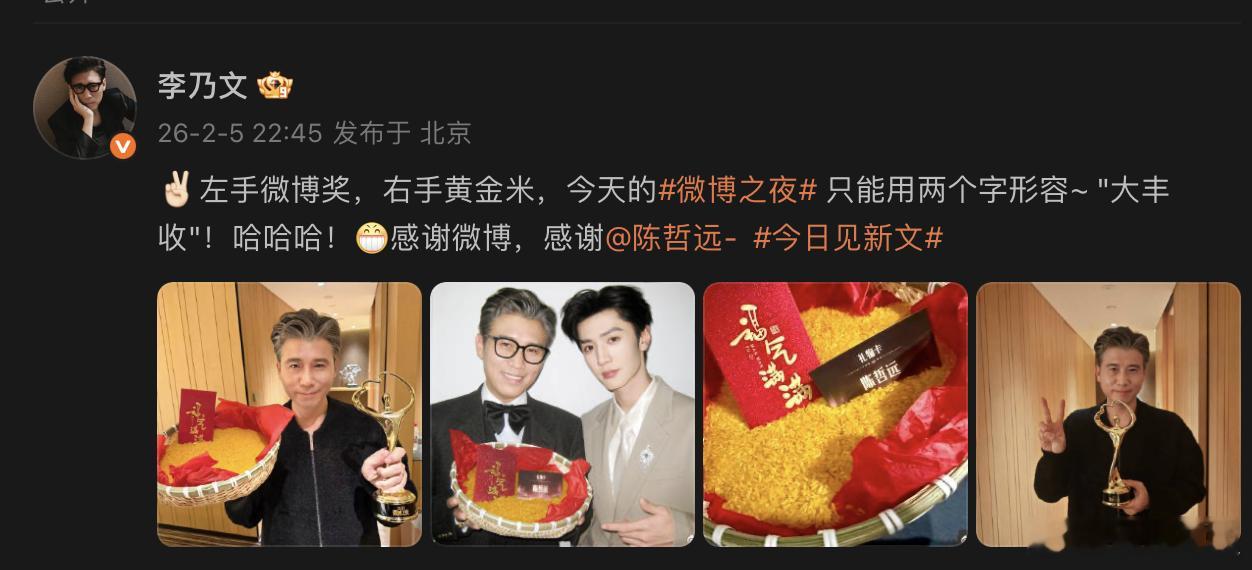 李乃文陈哲远合照 微博之夜 发文,晒了和的合照