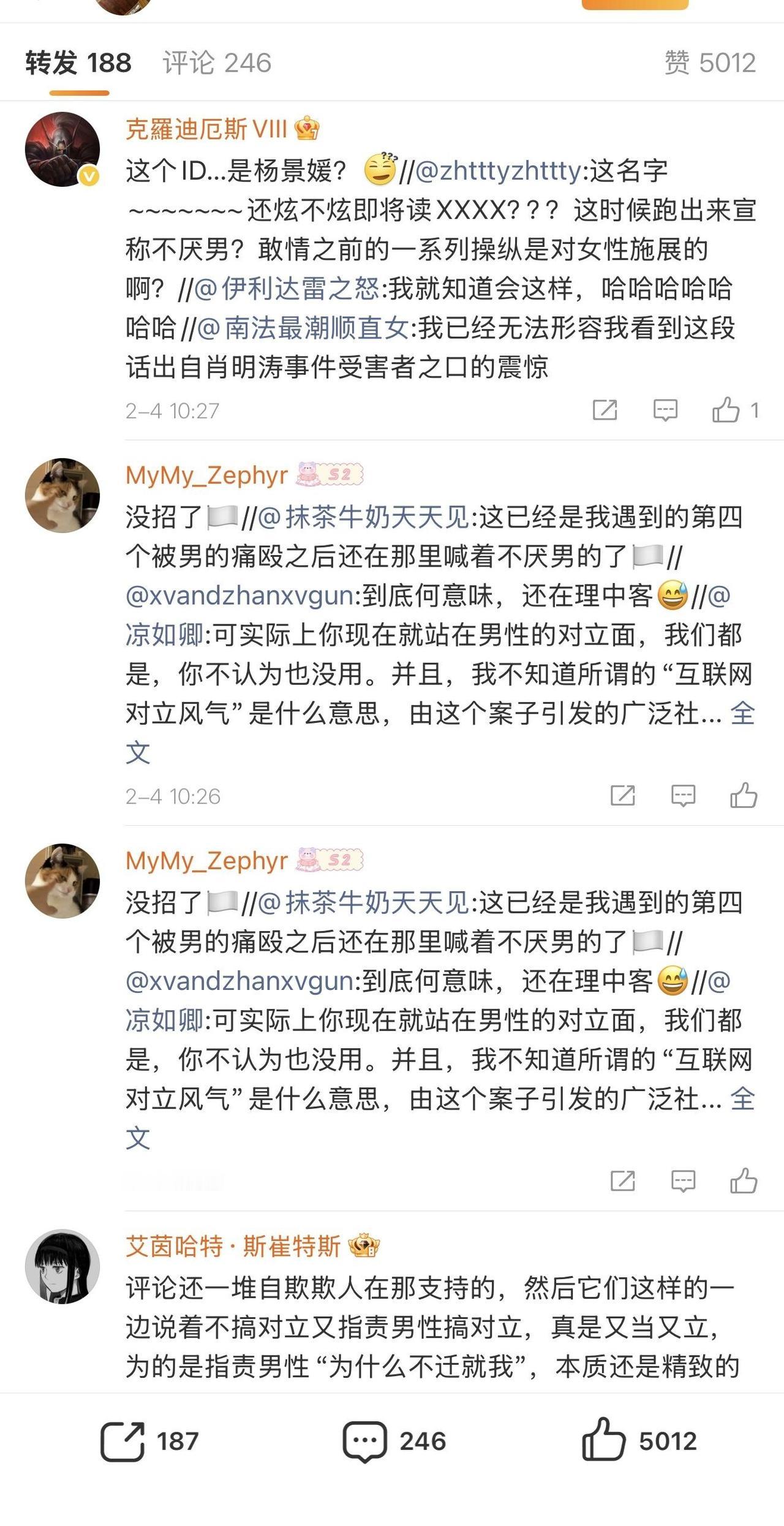 如何评价杨景媛刹车言论评论区和转发区被冲烂? 事情似乎向着出人意料的方向发展 ------------------------------------ 再一次证实了一个道理: left wing,包括女权、LGBTQ、黑命贵等等,缺乏自我调整机制,历史上看来left wing一定是越来越极端,越来越抽象,这是它的内在性质决定的。老资历占据了生态位,小登只能更加极端,否则永无出头之日。长期下来,光谱不断左移,原来的极端派变成了温和派,而原来的中间派,会被划入敌方阵营。