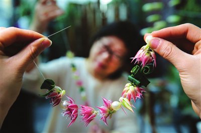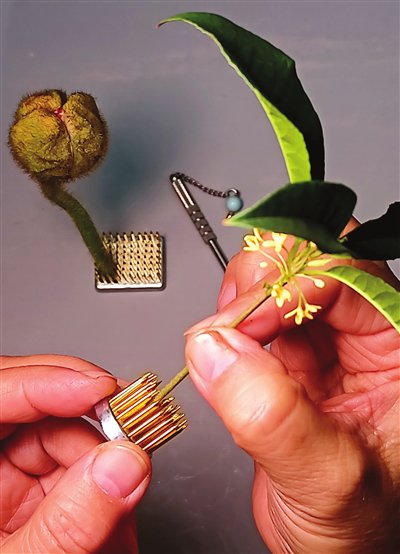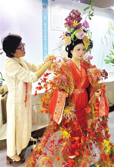 国家级非物质文化遗产“传统插花”代表性传承人王莲英的第二批弟子、天津市“传统插花制作技艺”第四代代表性传承人刘冬梅对此感触颇深。一百年前,她的祖辈曾在津冀地区从事花卉行业。她回忆说,直到改革开放前,人们更注重插花的大小与数量;如今,更看重其品质、造型、配色与艺术性。从事插花艺术已三十年的刘冬梅,不仅带领团队荣获亚洲杯中国展区金奖、中国杯首届插花花艺大赛亚军、人体花饰设计与创作大奖等多个荣誉,还曾承担2025年上海合作组织峰会各国元首接机花束与贵宾厅花卉布置、2016年G20杭州峰会新闻中心、第二届“一带一路”国际合作高峰论坛、2019年北京世界园艺博览会中国馆日以及多届天津夏季达沃斯论坛的花艺设计与布置工作。与此同时,她在全国开展花艺教学已二十五年,学员超过千人。