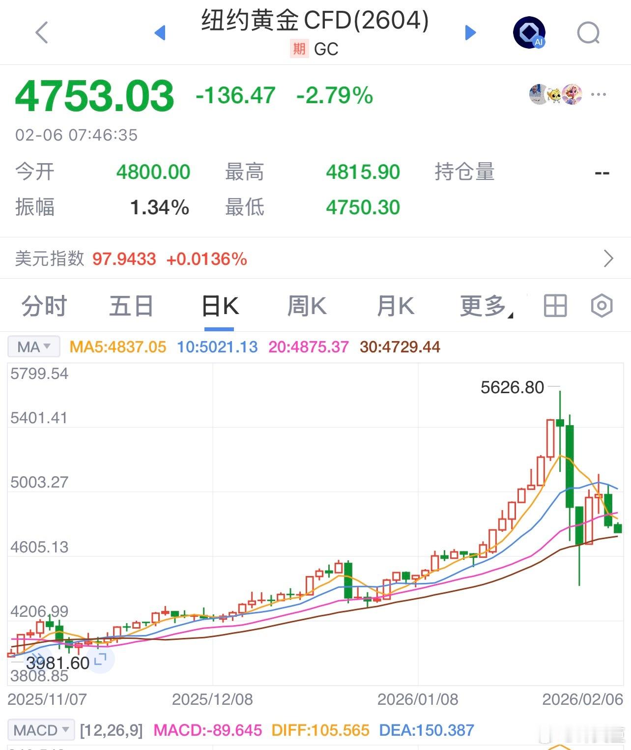 黄金白银 继续回落,国际白银现货价格再创新低,COMEX黄金期货收跌3.08%,报4798.1美元/盎司;COMEX白银期货收跌16.64%,报70.35美元/盎司。值得注意的是,COMEX白银期货此次大幅下跌,一天就轻松抹去前三天的弱反积累的涨幅。 许文臣