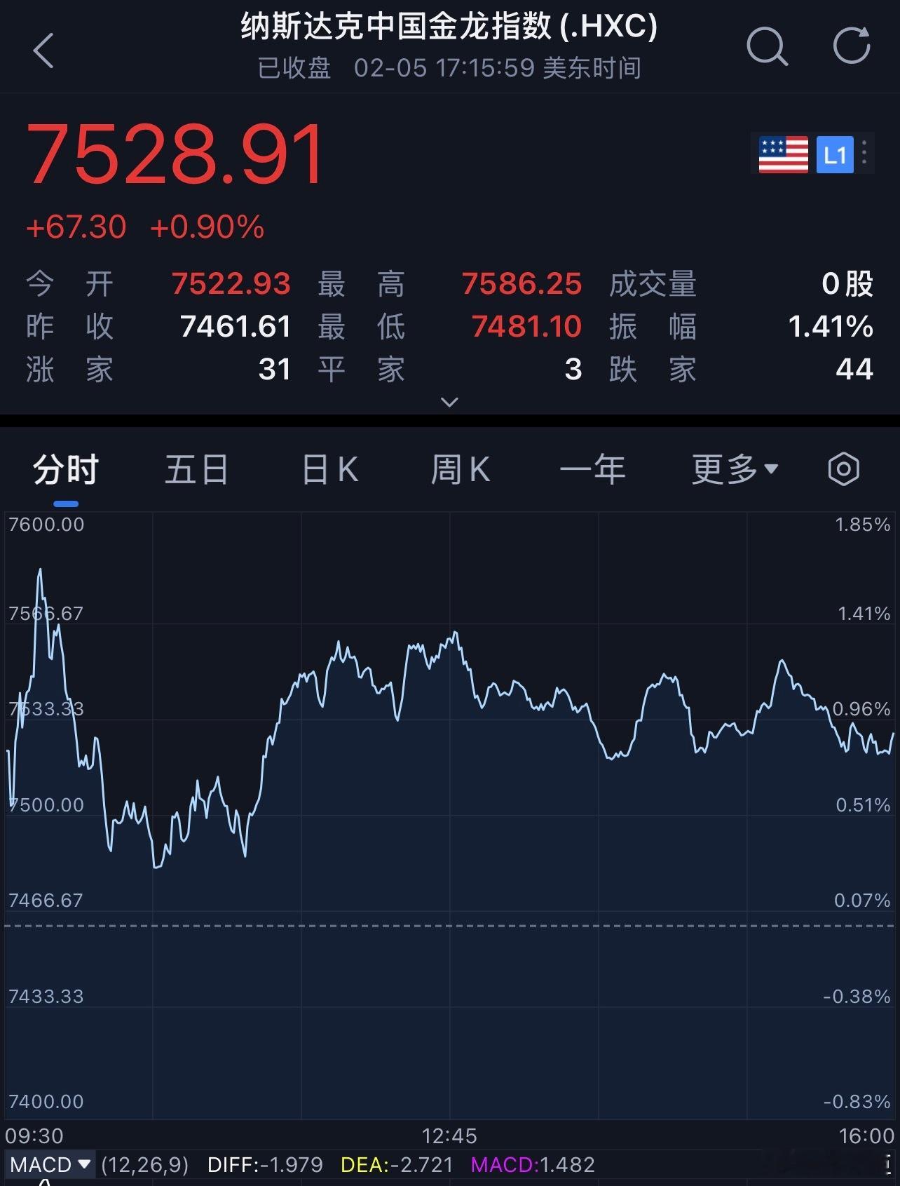 好消息是昨夜中概股逆势走强,纳斯达克中国金龙指数收涨0.9%。