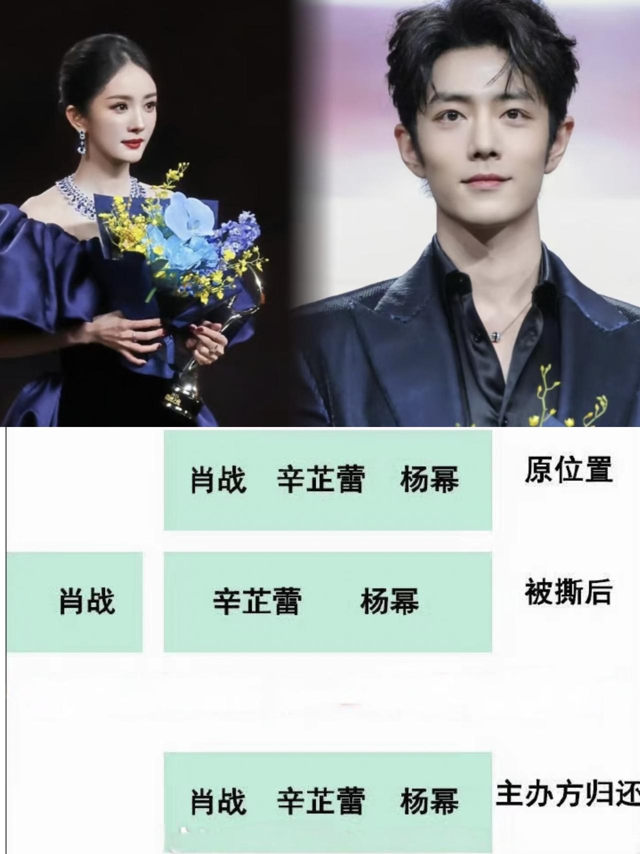 肖战名牌被撕这事儿, 说到底, 不可能是杨幂搞的鬼,也不可能是肖战,更可能是微博故意搞的“乌龙”! 首先,杨幂是十几年的顶流,从《宫》《仙剑三》《三生三世》,到去年大火的《生万物》,爆剧一大堆! 拿queen是板上钉钉的事儿,有撕肖战名牌的时间,不如在台上拿着奖杯多站几分钟划算! 而且杨幂工作室硬气喊话微博平台,很突然很震惊很无奈!要个解释! 其次,说是肖战自己团队弄的就更不可能了! 再怎么变,坐的也是副C位,离中间还更远了,自己团队怎么会做这种损人不利己的事呢? 但微博自己就不一样了,撕一个明星的名牌,直接把话题度拉爆了,又刷了一波自己的存在感! 关键是,微博自己出来认领了,表示工作人员复查时工作失误! 对此,你们觉得呢?