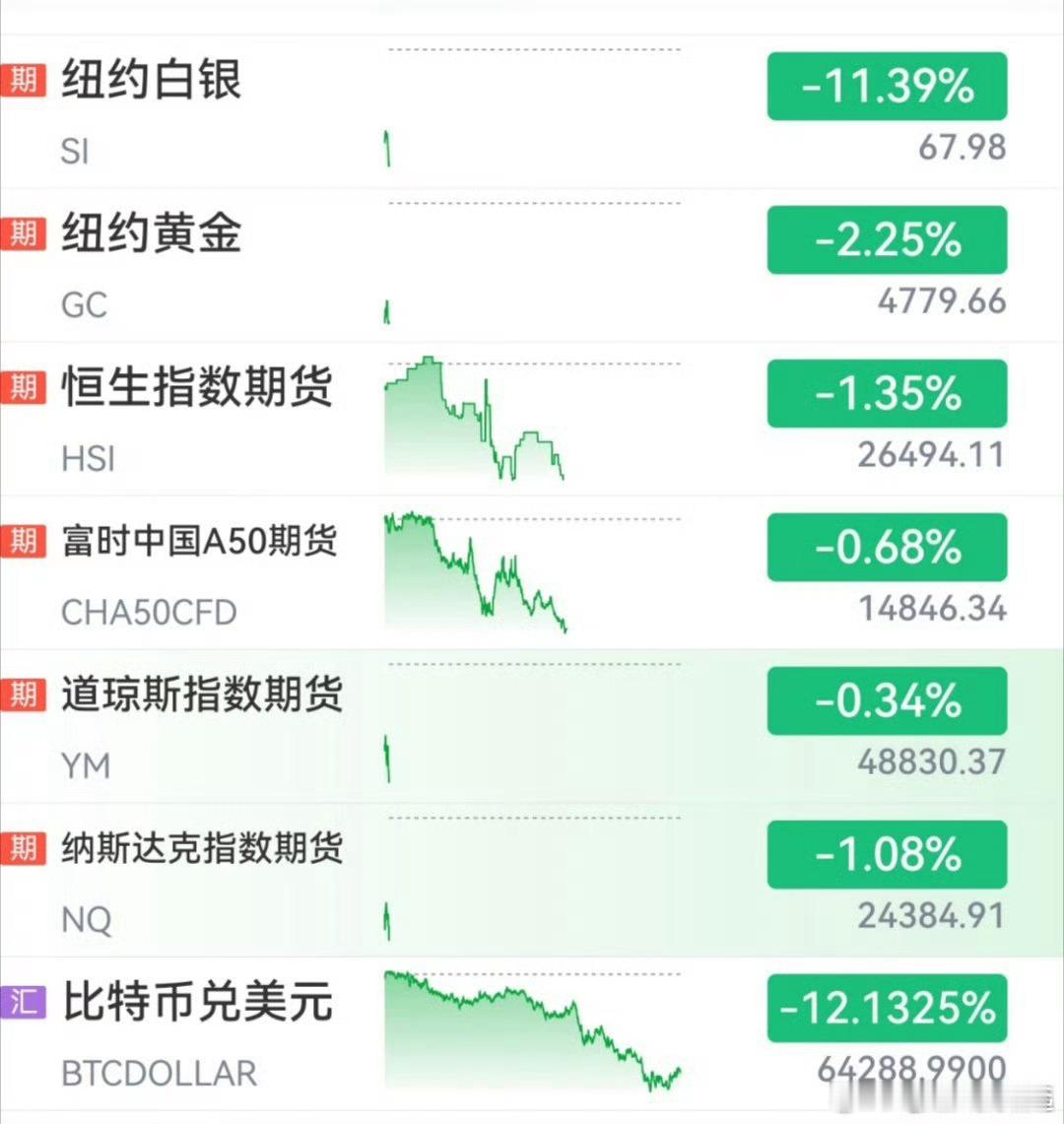 黄金白银比特币暴跌一睁眼发现昨天晚上美股、黄金、白银、比特币、石油全崩了……超过