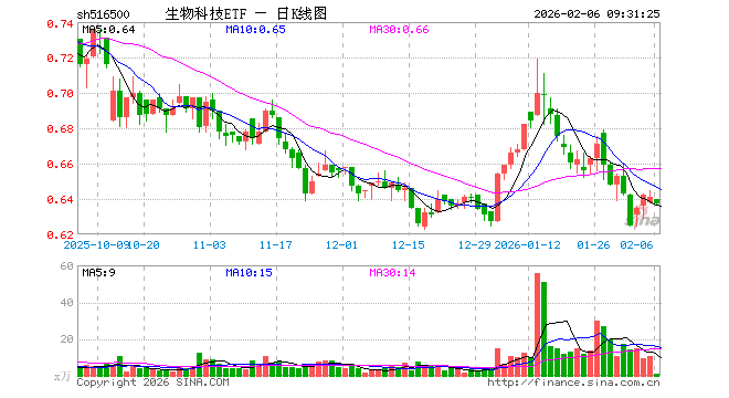 2月6日,生物科技ETF(516500)开盘跌0.16%,报0.640元。生物科技ETF(516500)重仓股方面,药明康德开盘跌0.75%,恒瑞医药跌0.72%,迈瑞医疗跌0.11%,复星医药涨0.30%,上海莱士跌0.16%,百济神州跌0.58%,长春高新跌0.19%,康龙化成跌0.69%,泰格医药跌1.10%,甘李药业跌0.45%。