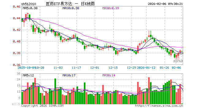 2月6日,医药ETF易方达(512010)开盘跌0.26%,报0.383元。医药ETF易方达(512010)重仓股方面,恒瑞医药开盘跌0.72%,药明康德跌0.75%,迈瑞医疗跌0.11%,联影医疗涨0.00%,爱尔眼科跌4.43%,片仔癀涨1.51%,云南白药涨1.52%,新和成跌0.79%,华东医药跌0.03%,复星医药涨0.30%。