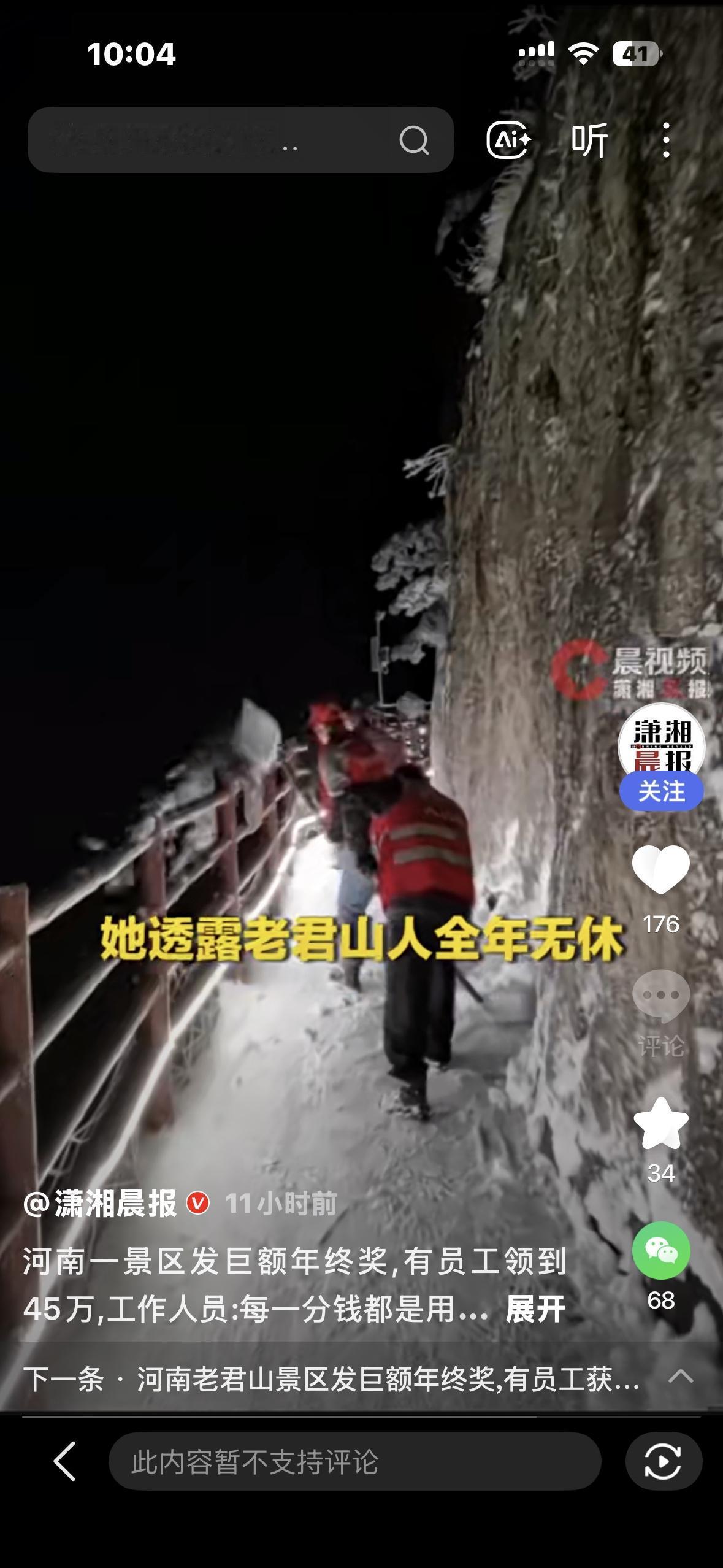 年终奖。老君山景区年终总结表彰大会的现场视频在网络上迅速走红。在大会的颁奖环节,多位优秀员工依次登台领奖,手中的奖金牌金额从20万元到40余万元不等。其中,不仅有员工凭借出色的营销业绩斩获45万元大奖,更有员工因短视频推广工作成效显著,获得37万元的专项奖励,这一丰厚的奖励力度迅速引发了全网的广泛关注与热议。