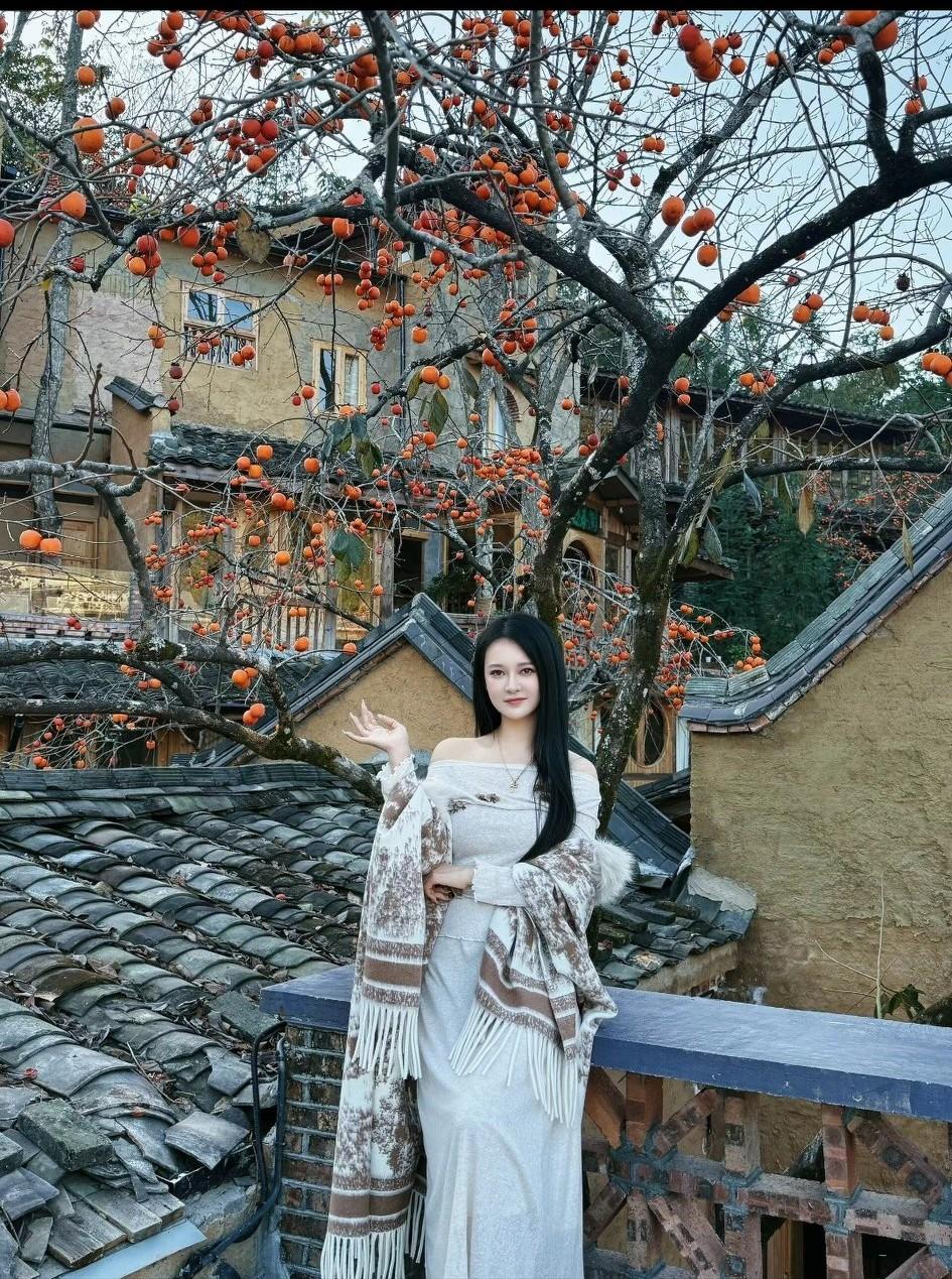 古镇红柿满枝头,少女凭栏寄秋思。晒图笔记大赛 分享一张秋色的美景