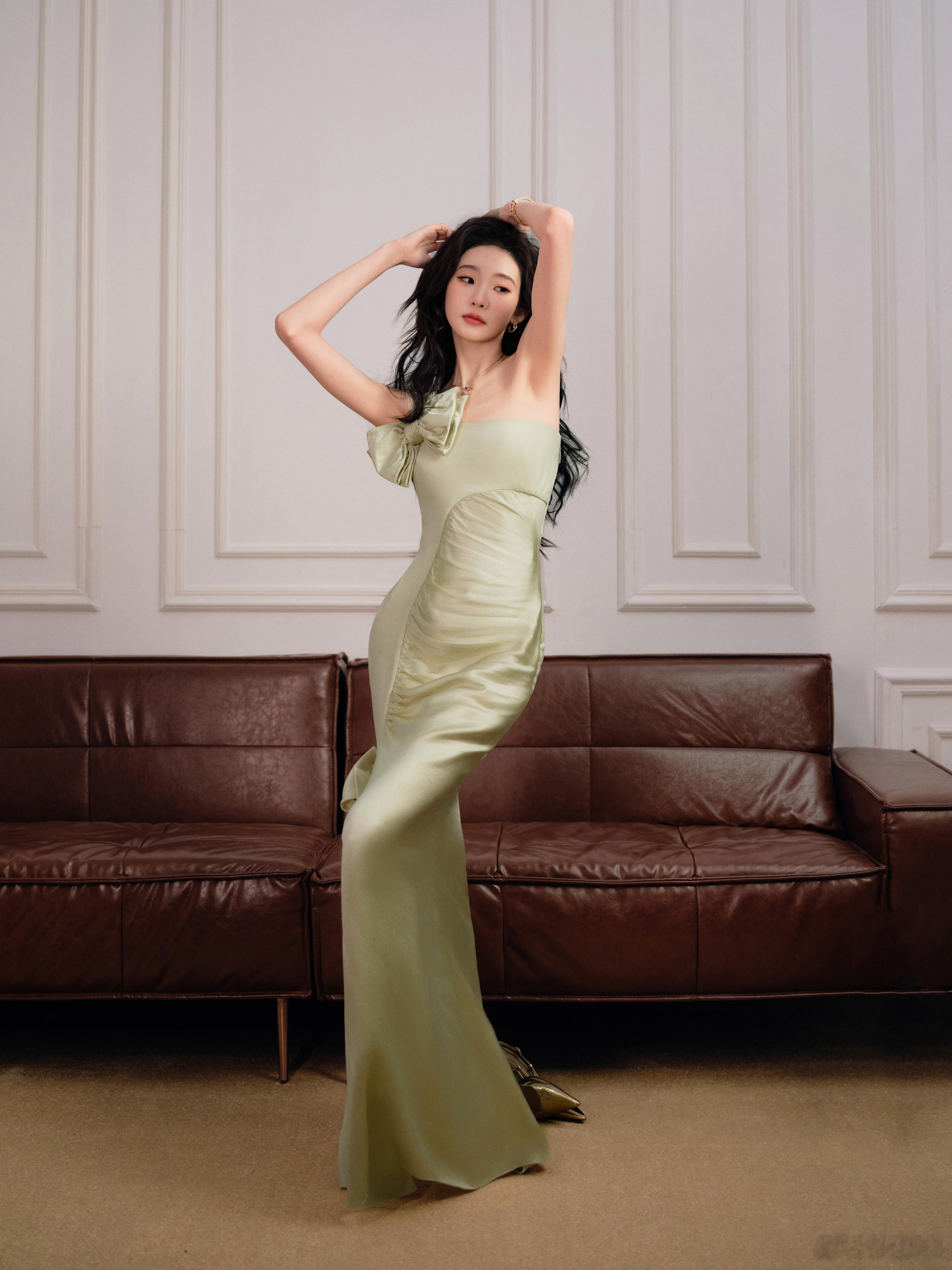 张艺凡 薄荷绿的风拂过发梢,缎面裙角轻扬,连时光都在此刻变得温柔又勾魂。张艺凡在