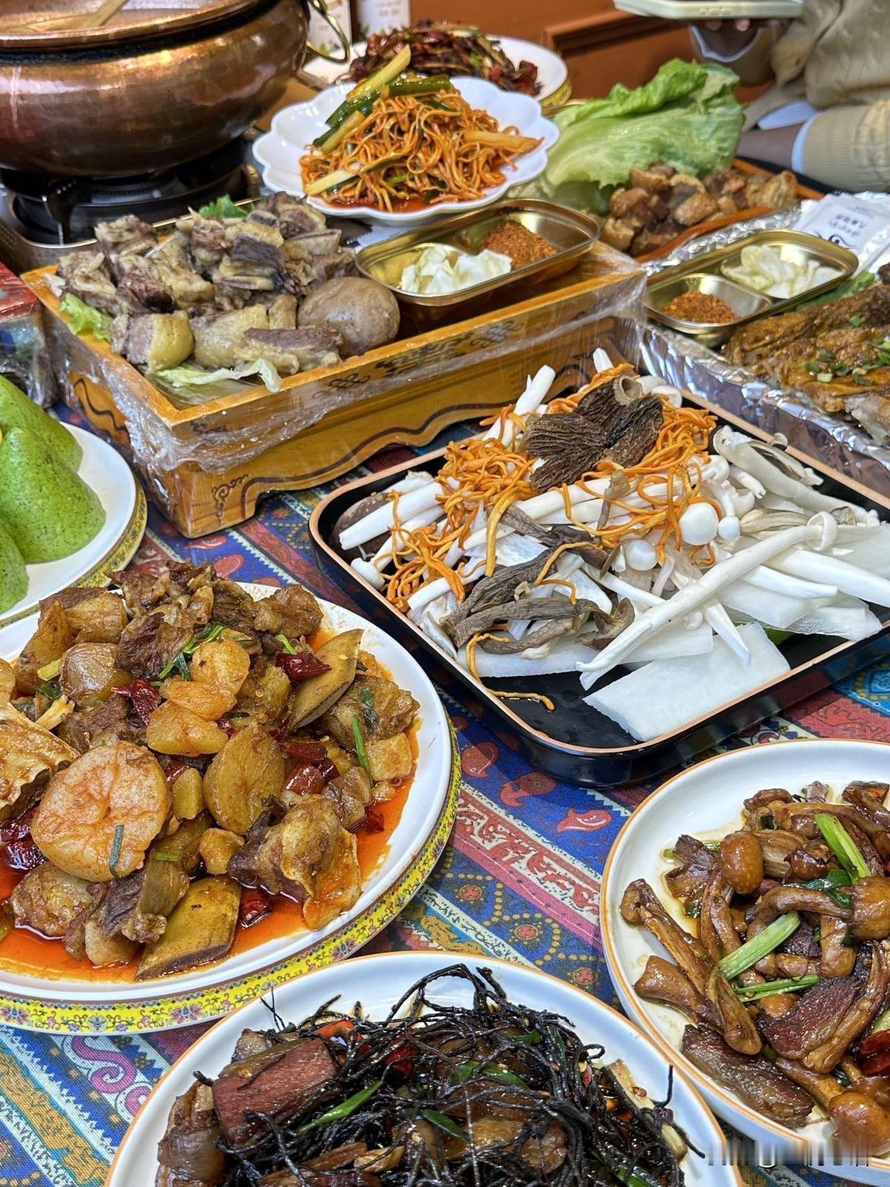 九寨沟夜游党集合! 晚上不知道吃啥的,听我的冲这家! 本地朋友私藏的格桑花音乐餐厅, 真的挖到宝了! 铜锅牦牛肉现切现涮, 几秒就能吃,嫩到弹牙。 烤羊排喷香, 手抓羊肉自带奶香,用小刀切超治愈。 凉拌虫草花解腻, 牦牛酸奶加红糖,酸甜刚好。 青稞酒度数低,女生也能小酌两杯。 重点是每晚6-9点有歌舞表演,氛围直接拉满! 吃饭不只是填肚子,更像一场热闹的小聚会。 建议早点到,选个前排看表演的好位置~ 来九寨沟的宝子,这家长藏餐闭眼冲不踩雷!