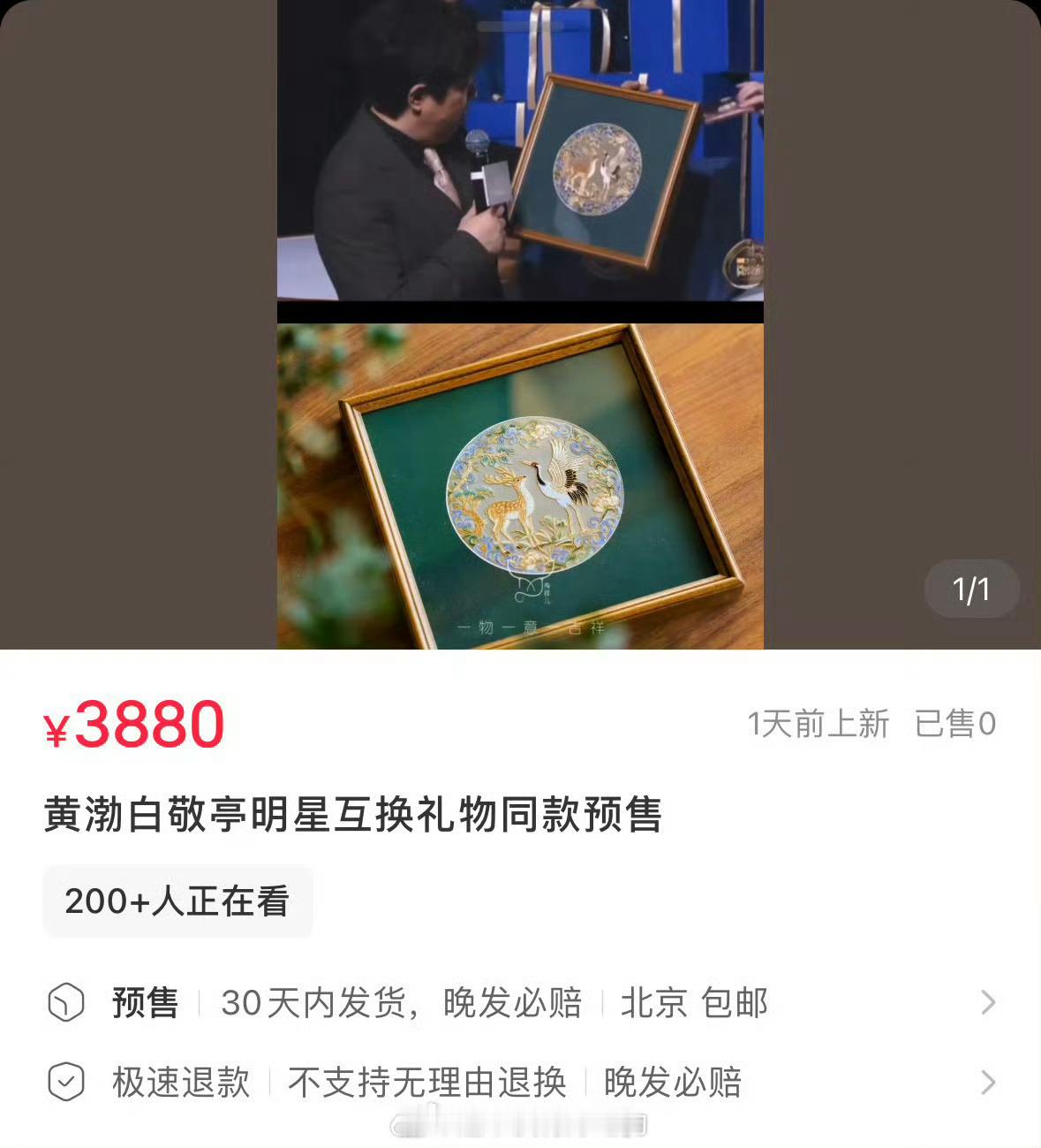 白敬亭微博之夜送的礼物是京绣,好大方寓意也好