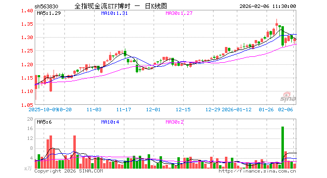 全指现金流ETF博时(563830)业绩比较基准为中证全指自由现金流指数收益率,管理人为博时基金管理有限公司,基金经理为杨振建、王萌,成立(2025-05-14)以来回报为30.53%,近一个月回报为5.38%。