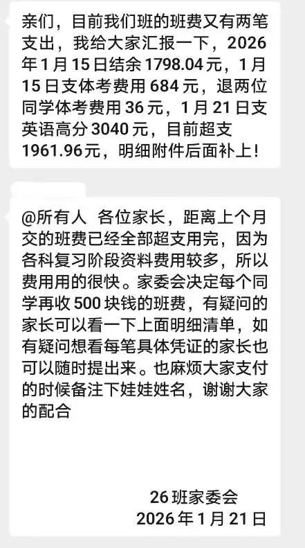 近日,重庆一家长举报,孩子所在班级家委会在初中三年间累计收取班费超10万元,主要用于购买学习资料及文印支出。班主任回应称,收费遵循自愿、公开原则。目前,渝中区教委已表示将立即介入调查此事。