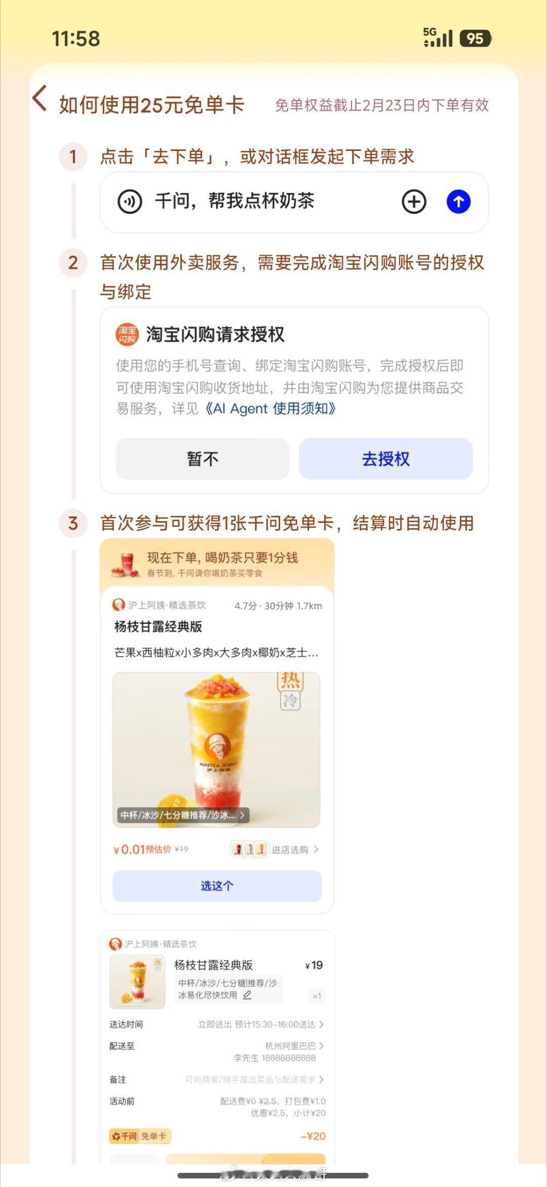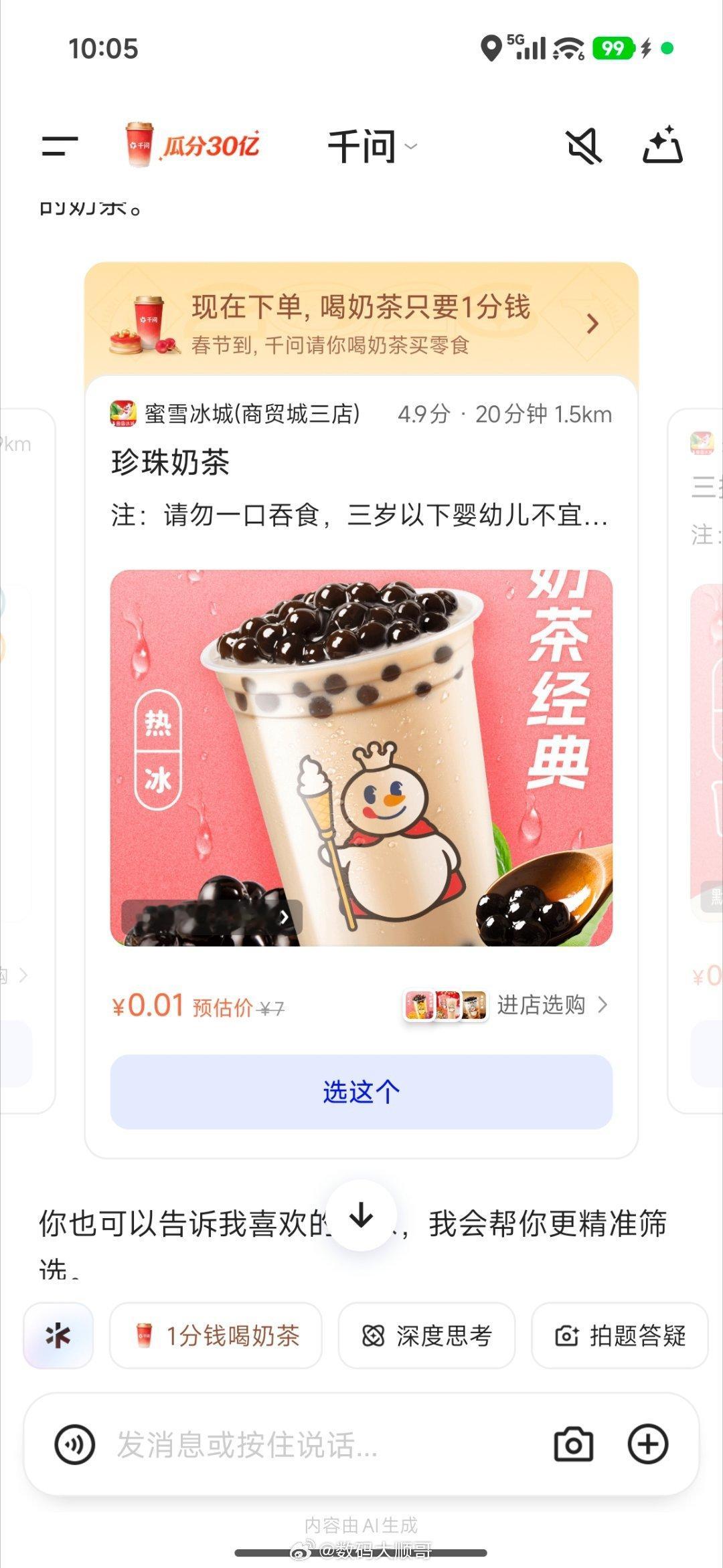千问春节豪掷30亿大免单,连请7天喝奶茶,这波甜度超标啦!我也来凑个热闹,关注+评论随机抽5个朋友买单,一起过个甜蜜年。参与超简单:只需下载千问App,用千问点奶茶,操作无门槛,福利直接送!大家快来尝尝AI请客的味道~千问免单